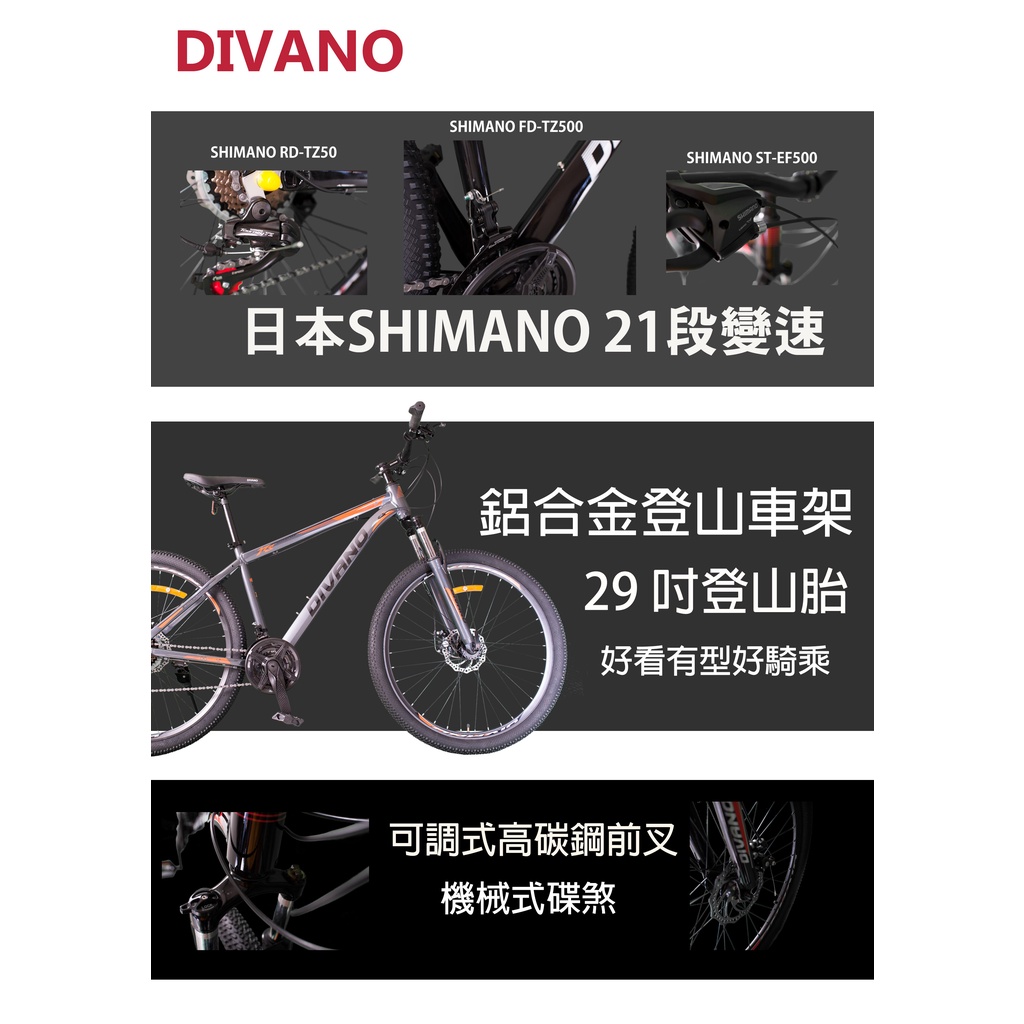 DIVANO 29吋21速鋁合金碟煞登山車 -日本SHIMANO變速系統 可調式避震前叉