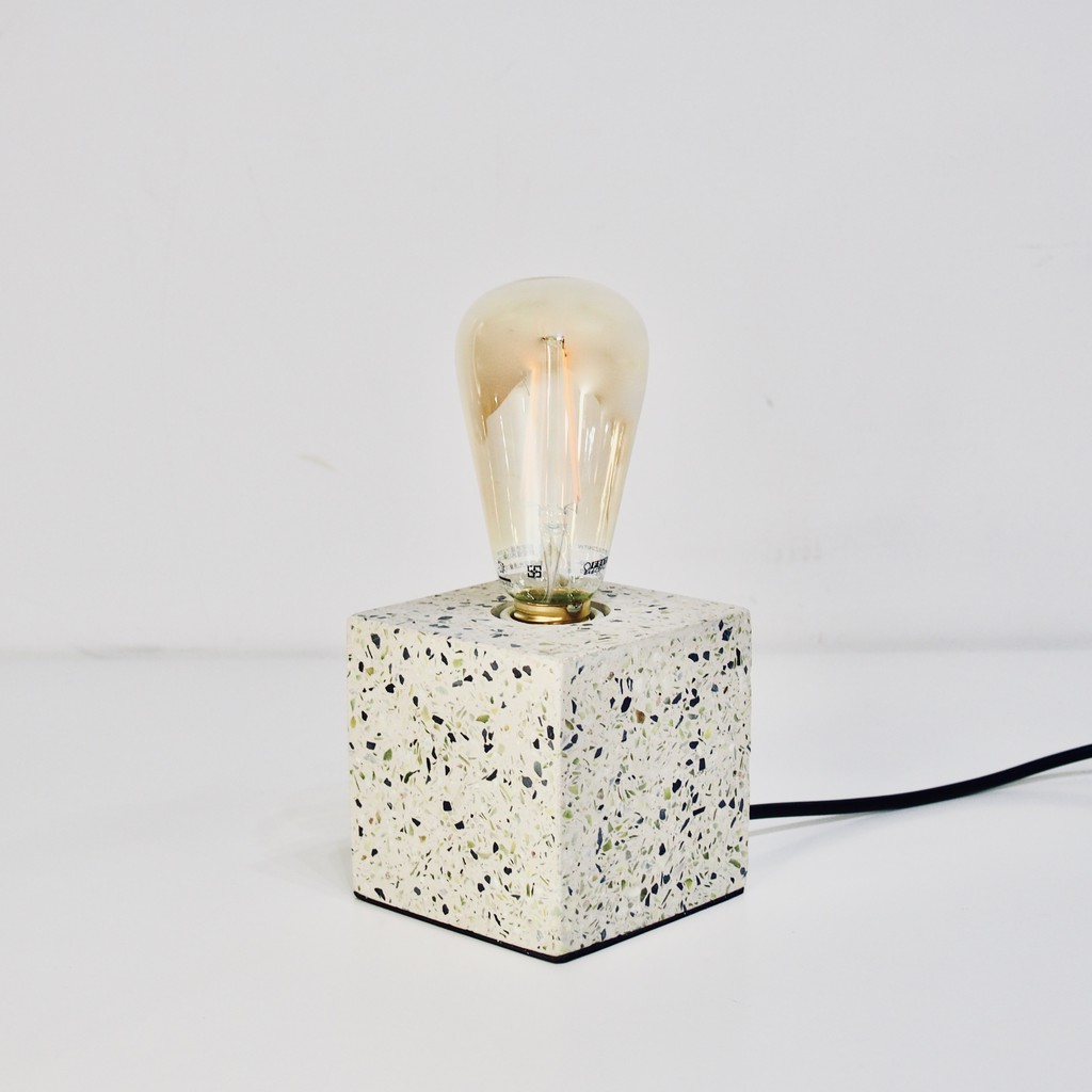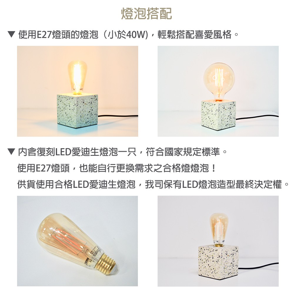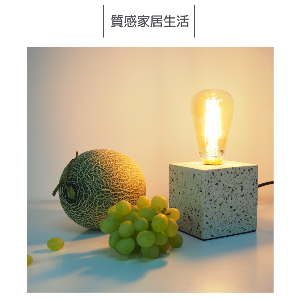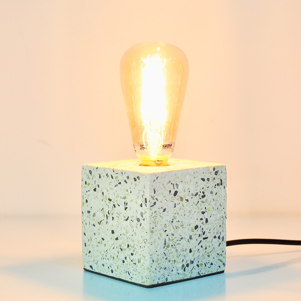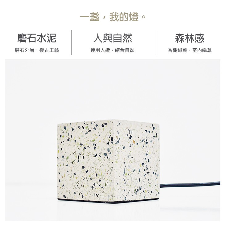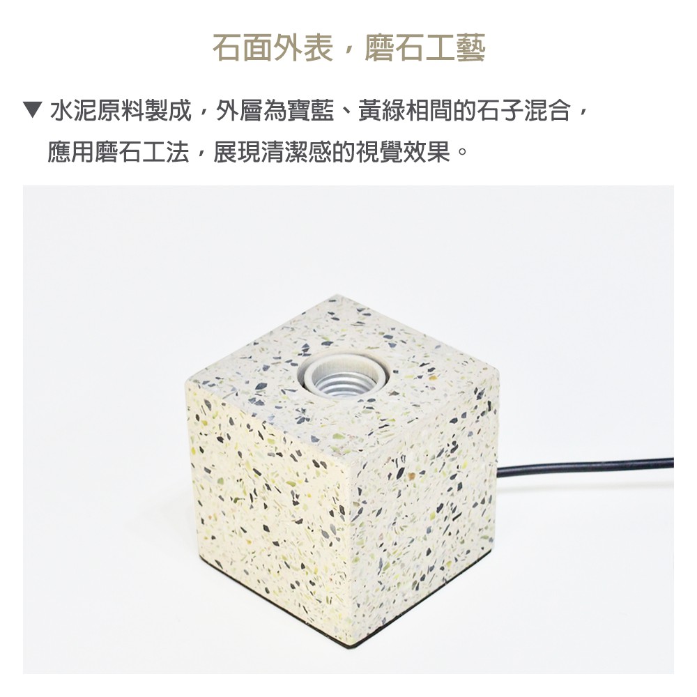 DeLife|清新森林磨石子方形水泥燈- 附LED愛迪生燈泡 清新風摩石子燈