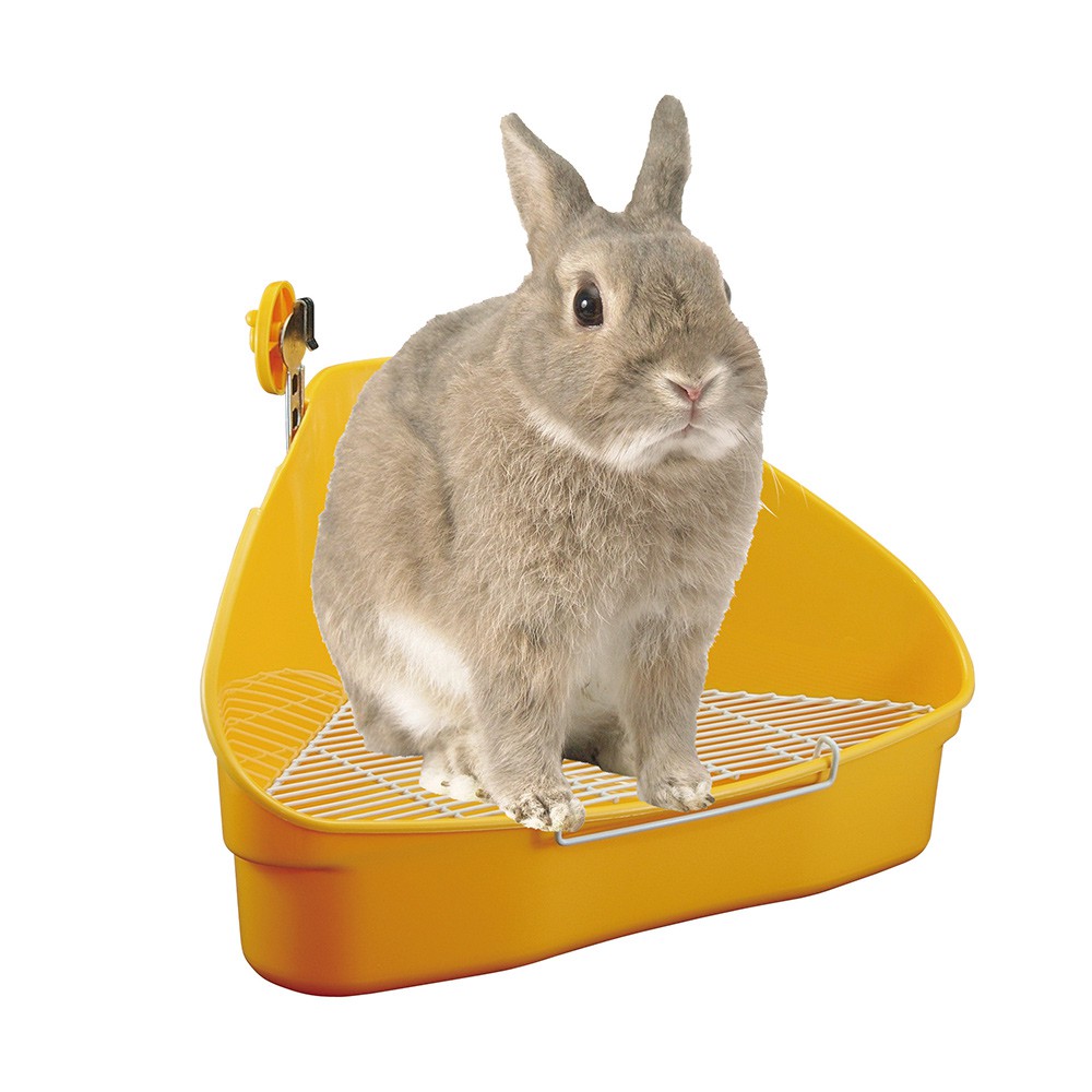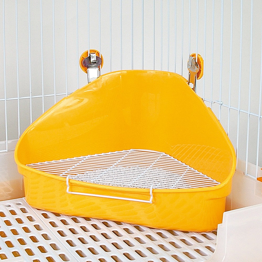 Marukan 高邊防撥踢腳 特大防污底網便盆 兔便盆 貂便盆 天竺鼠便盆 兔廁所 MR-314(黃色)大甩價 440元