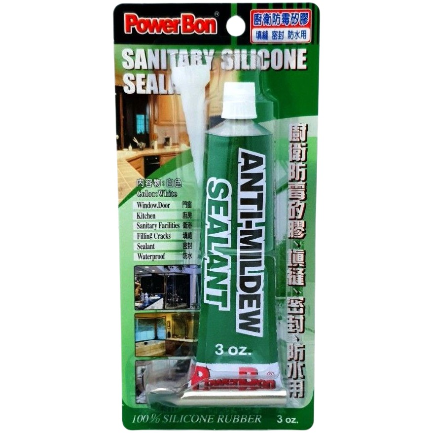 PowerBon廚衛防霉矽酮膠 防霉矽利康 牙膏型 填縫 密封 防水用 門窗 廚房 衛浴 3oz. 白色