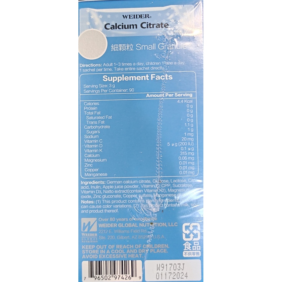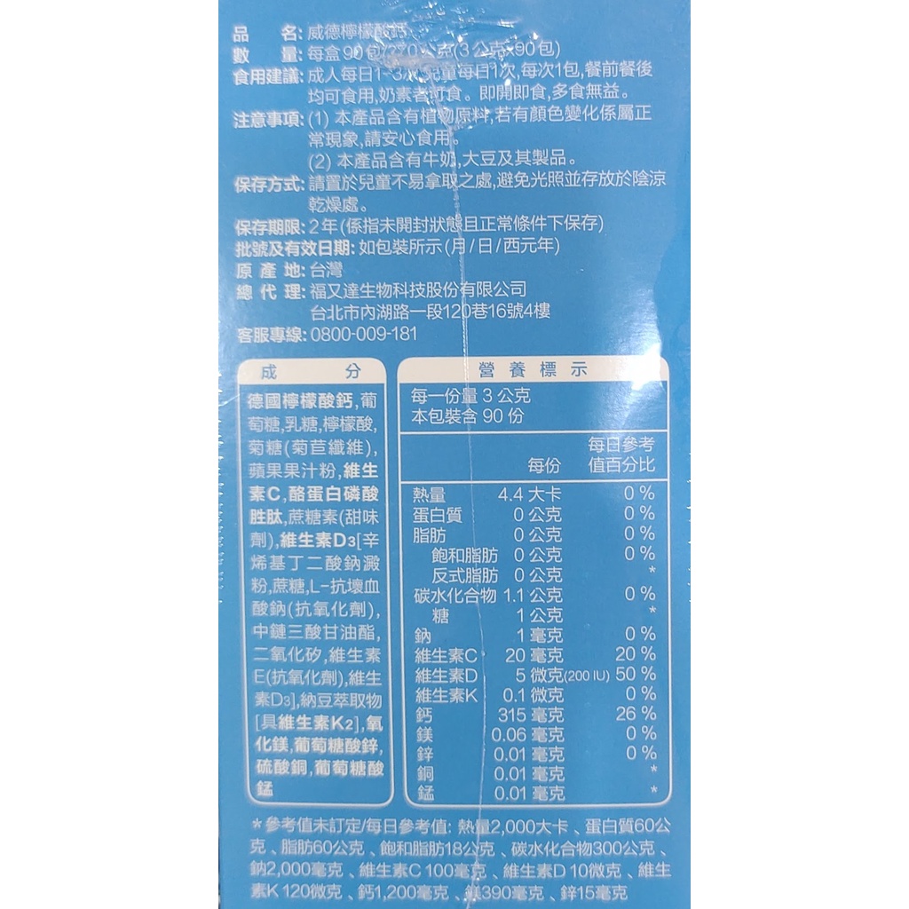 好市多代購-威德檸檬酸鈣每包3克共90包