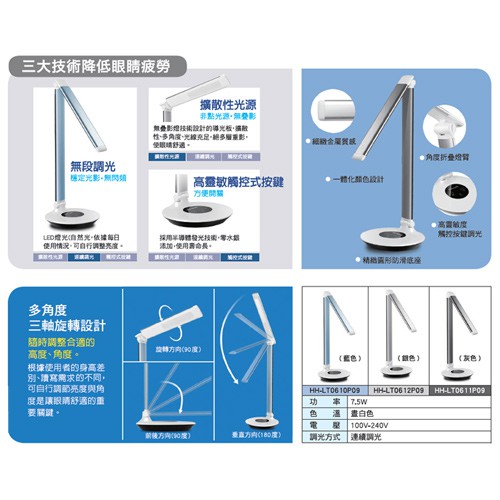 【國際牌 Panasonic】無藍光 LED檯燈 P系列 HH-LT0612P09 檯燈 護眼 桌燈 觸控調光 自然光
