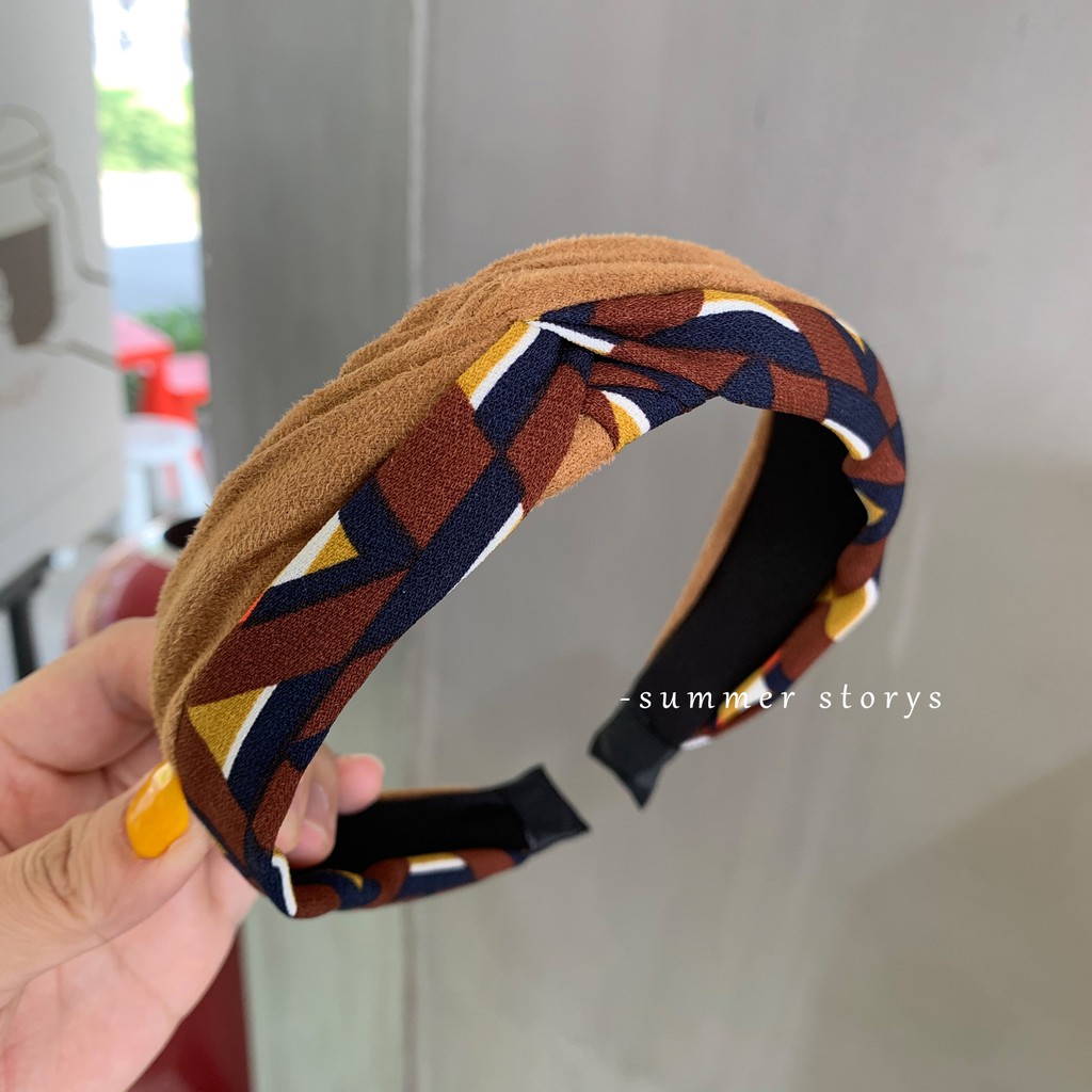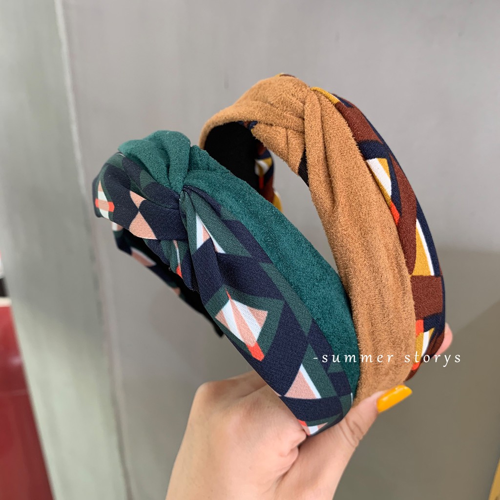 【STORYS】韓國chic風復古甜美幾何菱形麂皮絨拼接頭箍氣質文藝寬邊髮箍髮卡KR-250