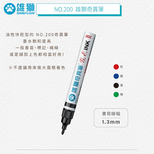 雄獅 油性速乾奇異筆 圓頭 (NO.200) 1.3mm 共4色【久大文具】