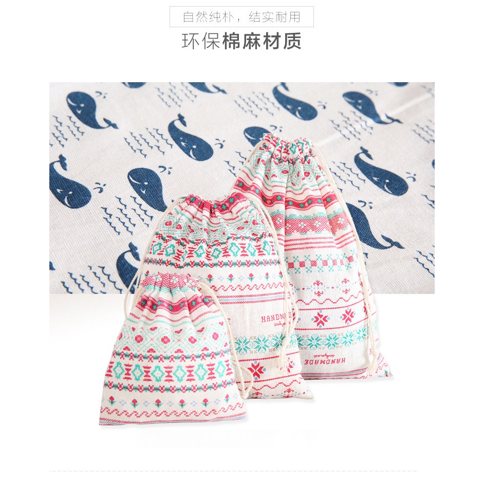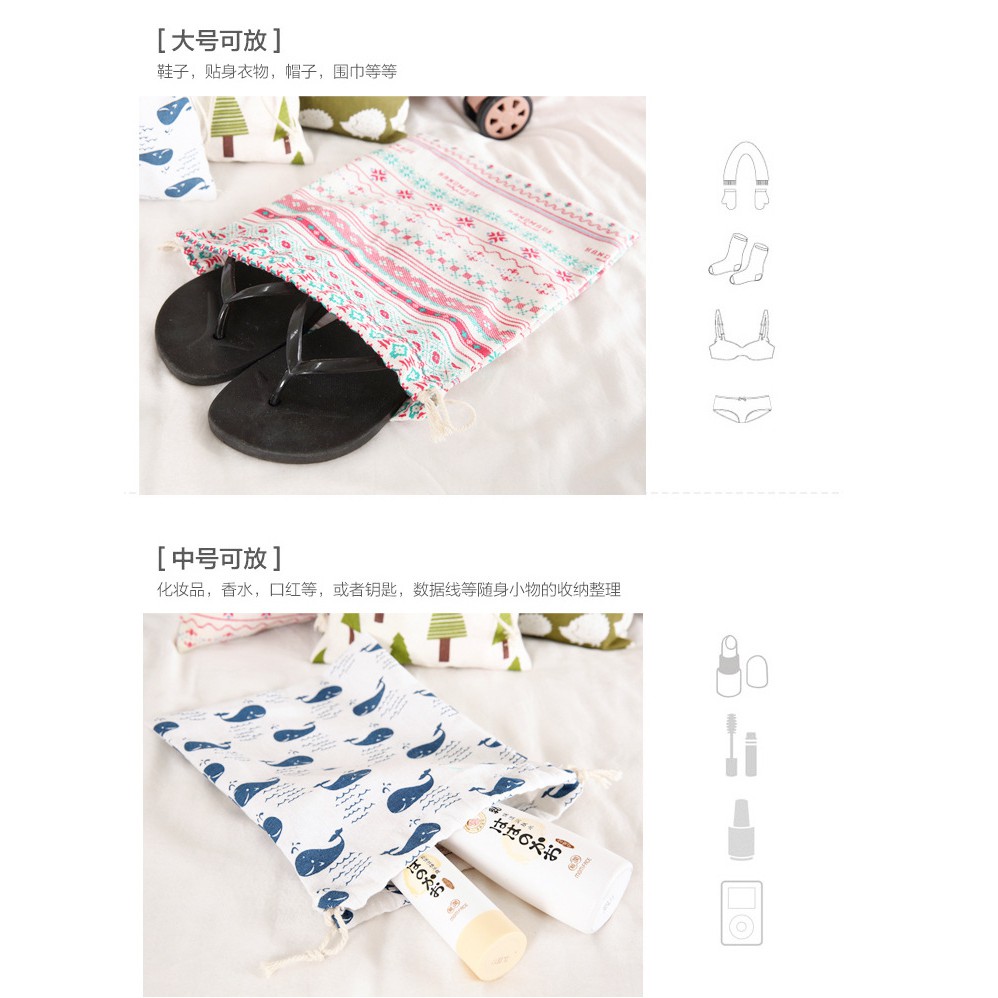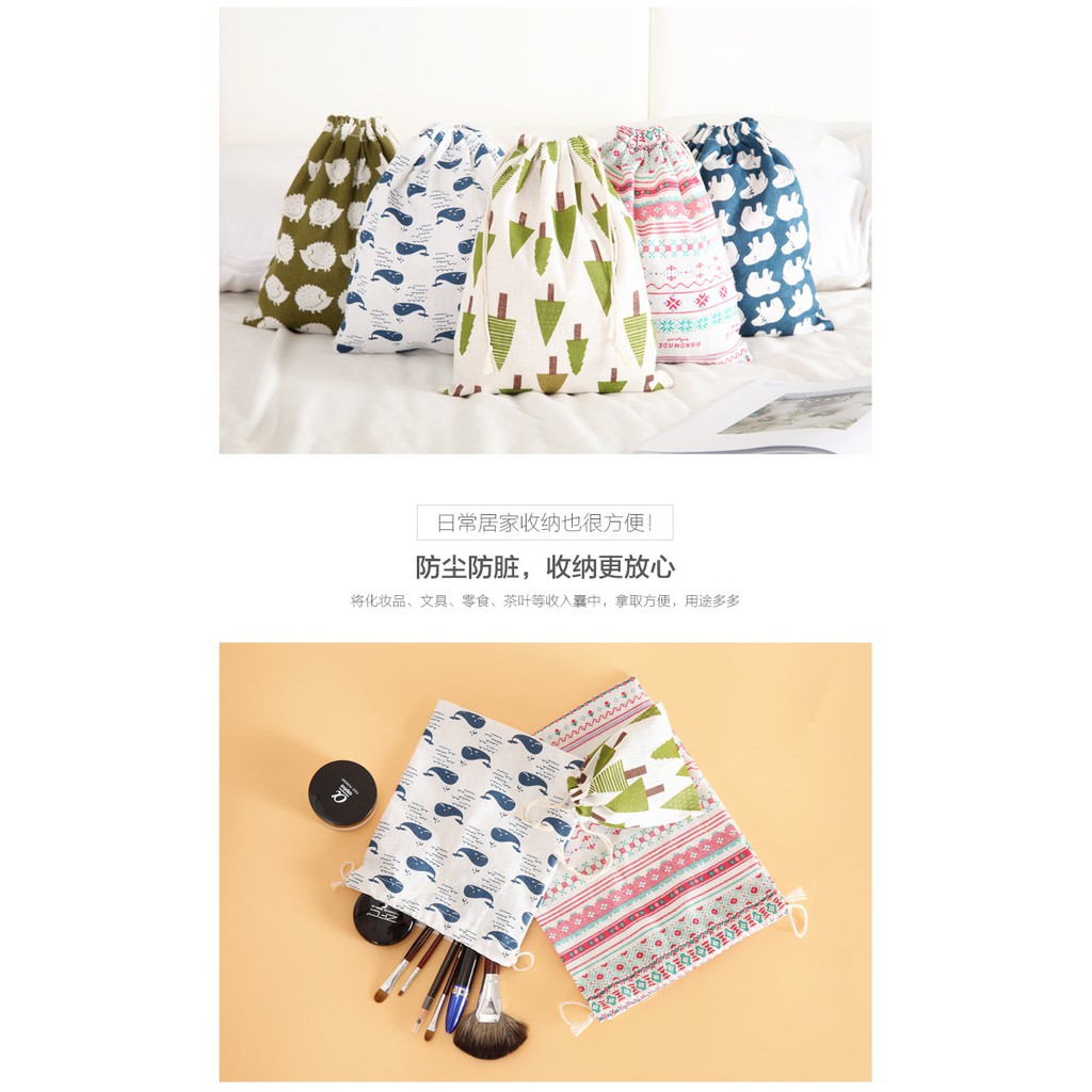 【歐巴嚴選 台灣出貨】印花棉麻旅行收納袋 束口袋 抽繩放內衣服玩具行李箱整理袋 小布袋