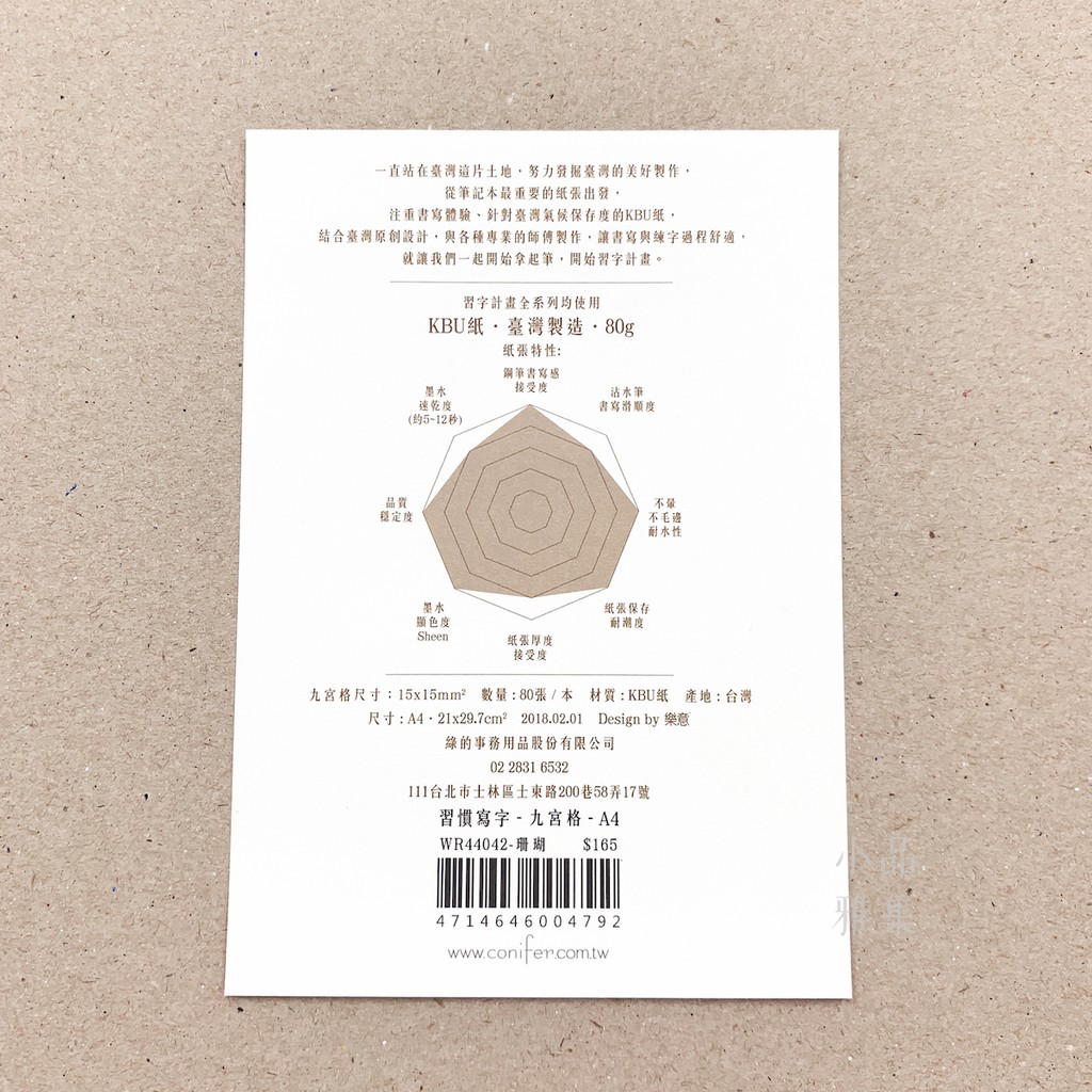 =小品雅集= 臺灣-綠的-紙品 A4 習字計畫 鋼筆用紙『習慣寫字』系列-九宮格 珊瑚紅