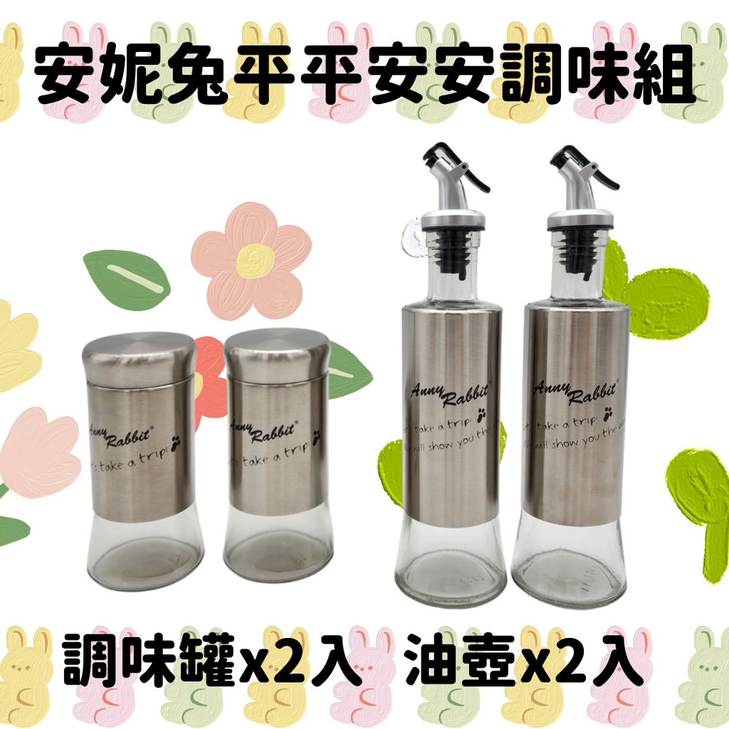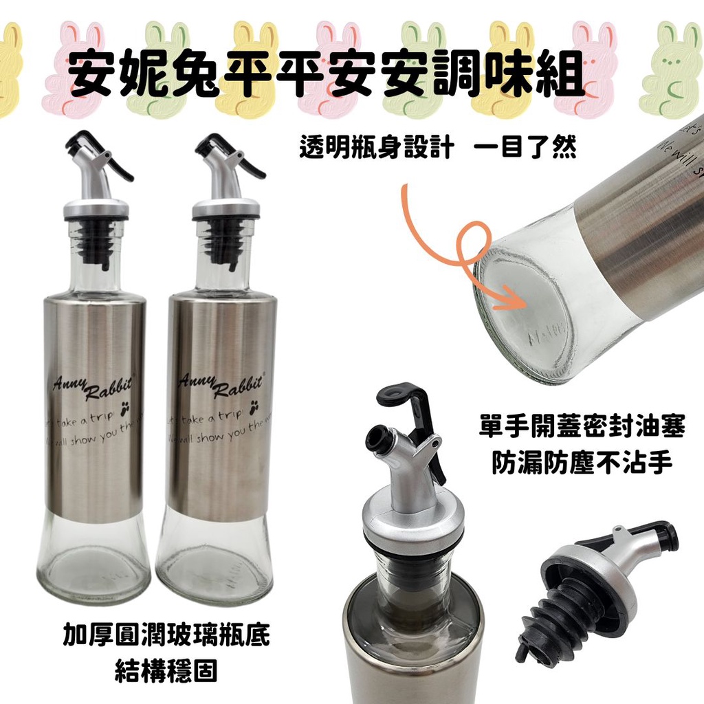 安妮兔平平安安調味組 油壺 調味瓶 調味組 玻璃油壺 玻璃調味瓶 油瓶 料理罐 調理罐 玻璃油罐 醬料瓶 醬料壺