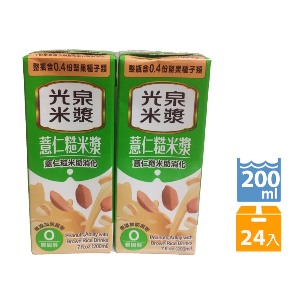 光泉鮮豆漿200ml、薏仁糙米漿200ml、糙米漿200ml- 18入、24入