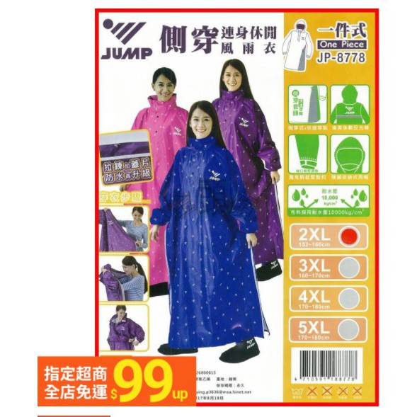 免運+JP8778B升級 +送贈品🎁🧑🤝🧑將門JUMP側穿連身休閒風雨衣 《2XL~5XL》(側開拉鍊式)—新代