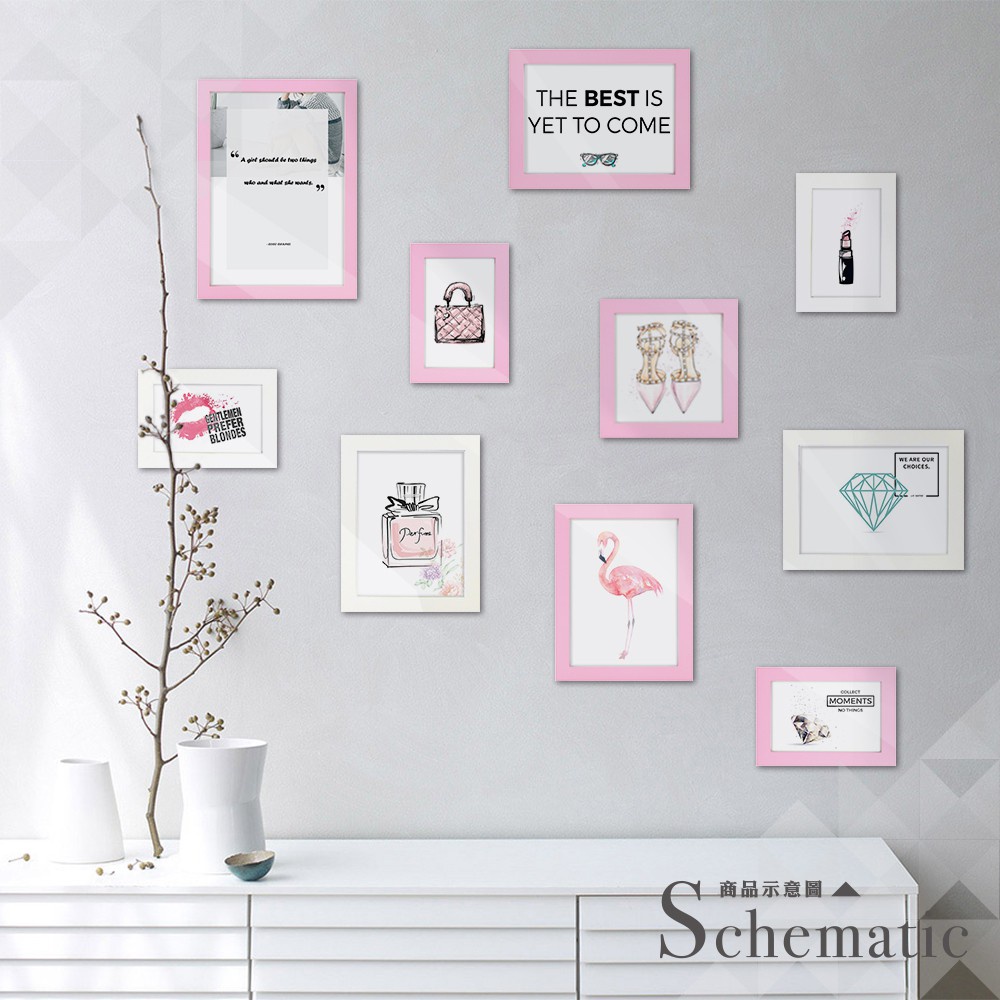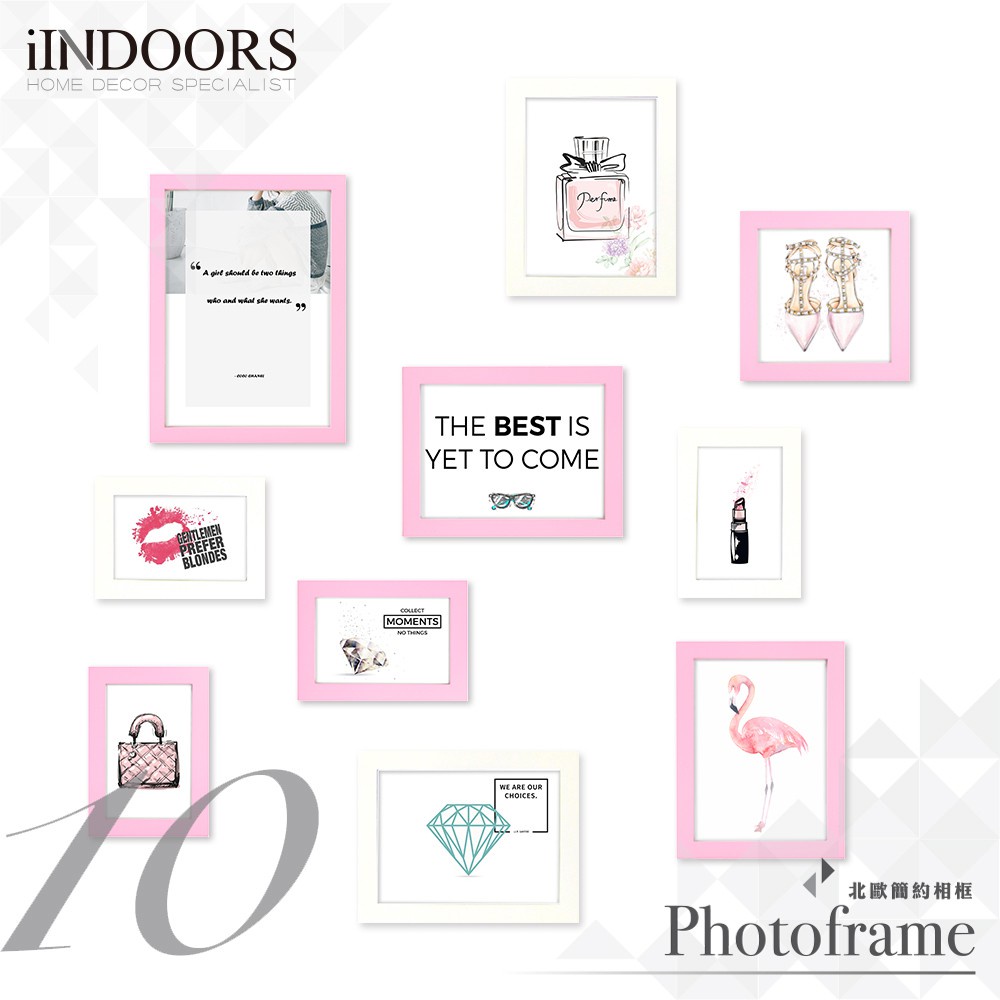 英倫家居 現貨 北歐簡約相框牆 粉紅+白色10入組合 送圖卡與黏土 實木畫框 照片牆 相片牆 設計 居家創意佈置