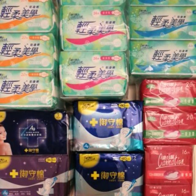 【內有七款】康乃馨超薄蝶型衛生棉;輕柔美學貼身棉;御守棉夜用超長36.5cm 極長40cm