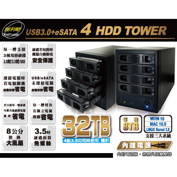 光華CUMA散熱精品*伽利略 35D-U3ES USB3.0 + eSATA 1至4層抽取式硬碟外接盒~客訂