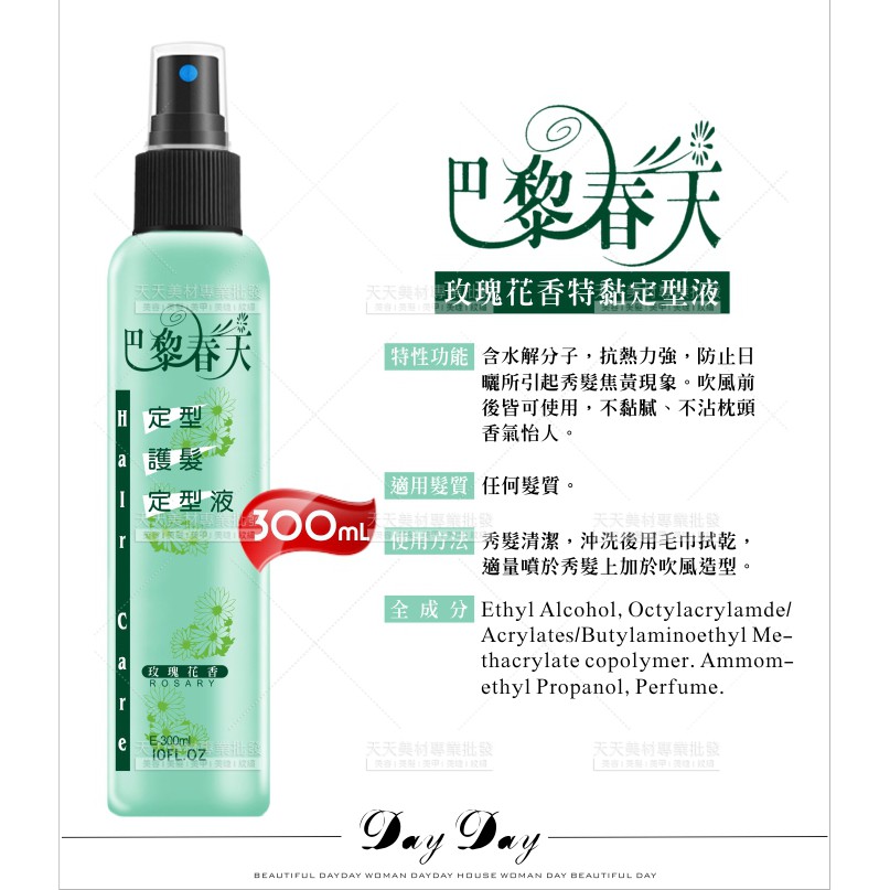 [61329]【美髮沙龍老字號】台灣製造 巴黎春天 玫瑰花香特黏定型液-300ml
