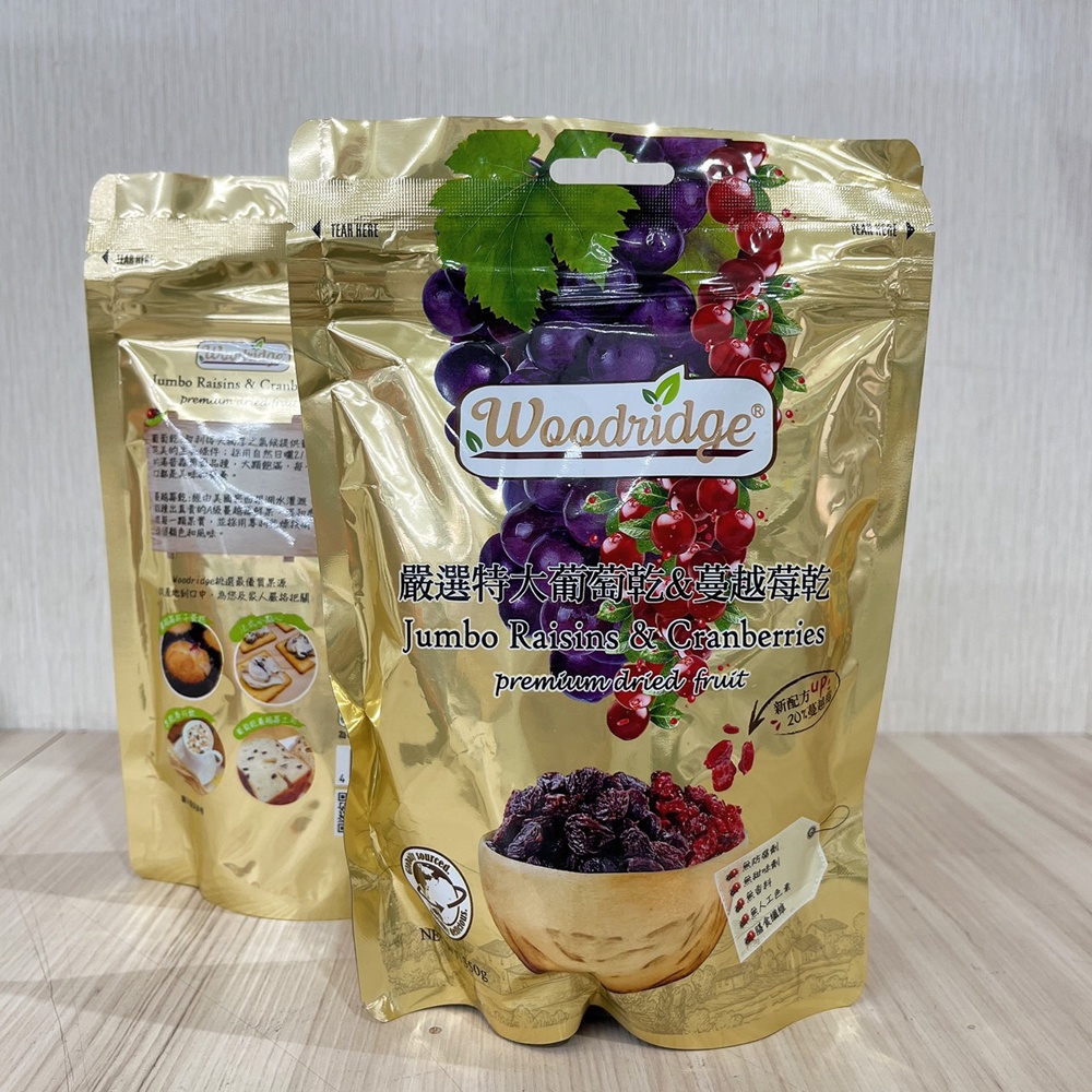 【柚子烘焙材料】Woodridge 森之果物 嚴選特大葡萄乾&蔓越莓乾 嚴選整粒蔓越莓乾 美國蔓越莓乾 智利葡萄乾 全素