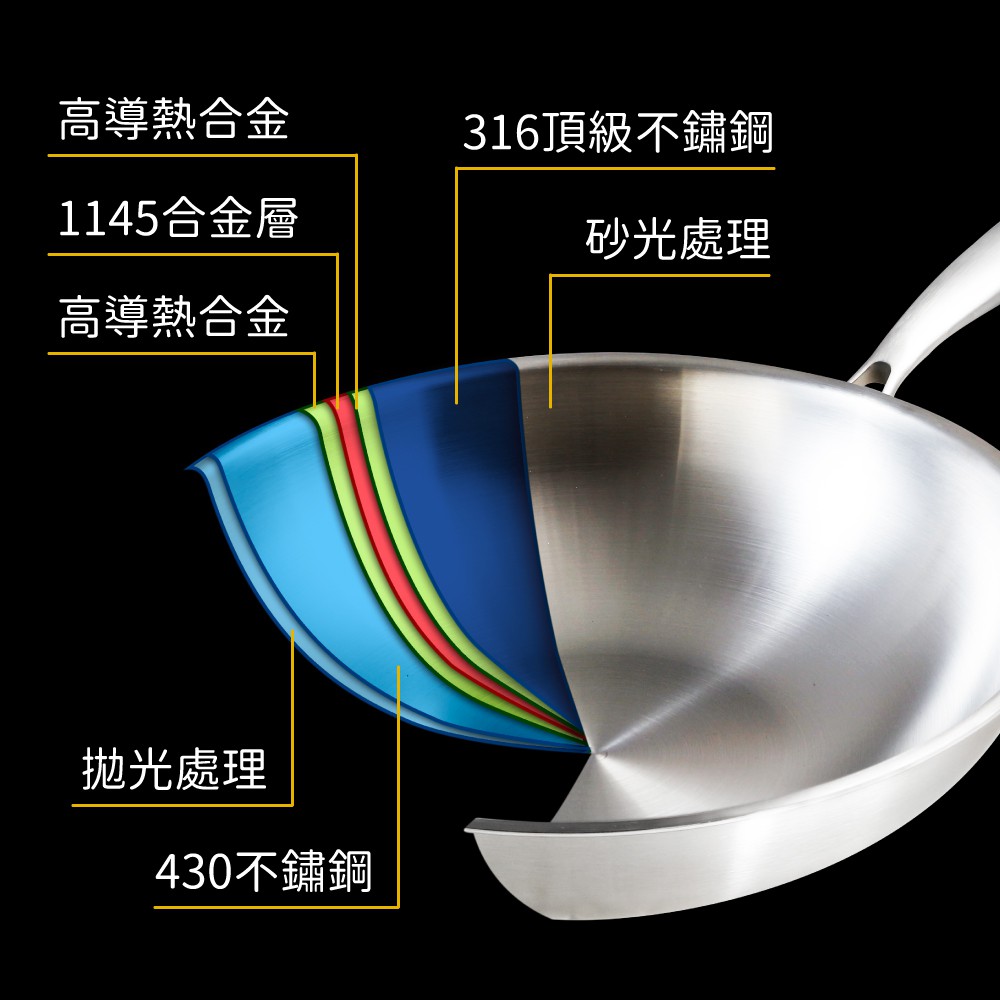 清水鍋具 - 316不鏽鋼複合金炒鍋 - 29CM/33CM/36CM/40CM (頂級316不鏽鋼)