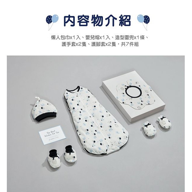 KU.KU 酷咕鴨 夢想氣球包巾禮盒-7件組|彌月禮(藍/粉)【麗兒采家】