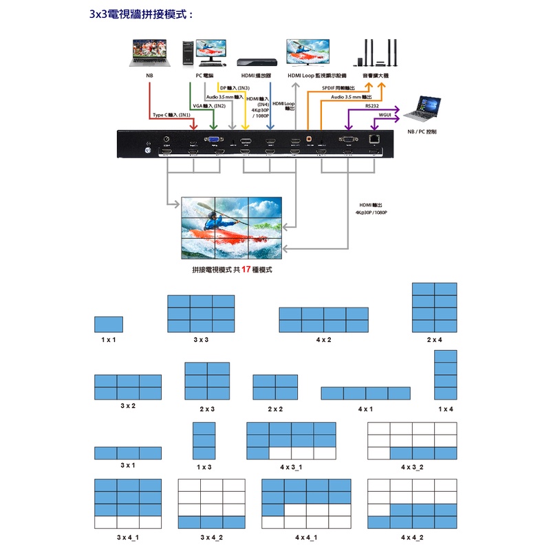 DigiSun VW433 4K HDMI 9螢幕拼接電視牆控制器