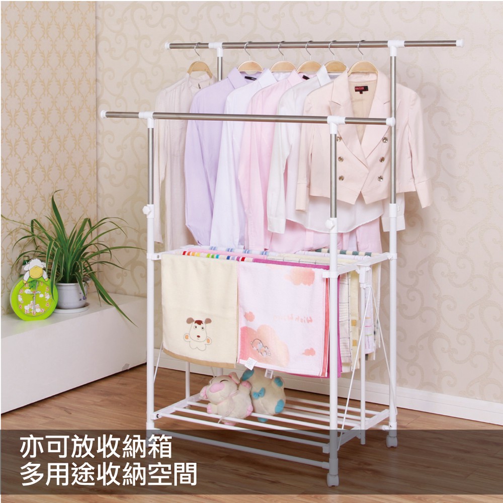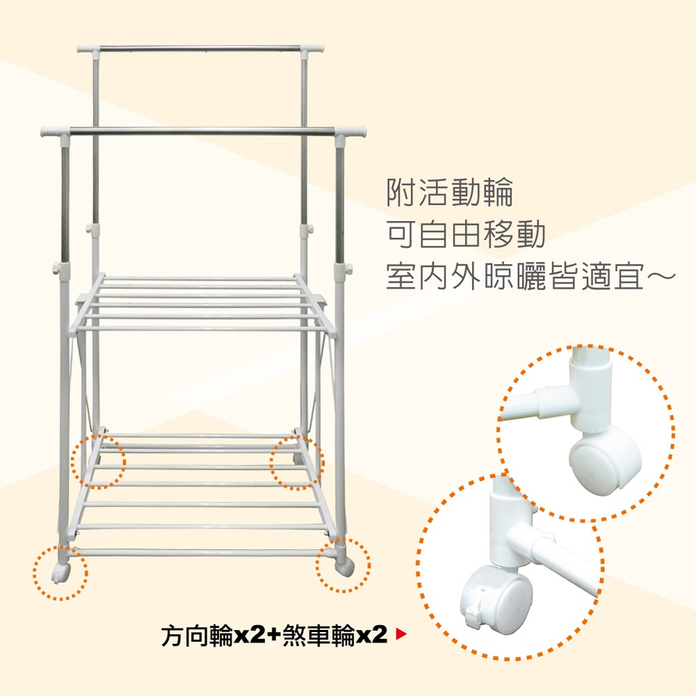 【雙手萬能】不鏽鋼秒收雙桿活動衣架 (曬衣桿/曬衣架/晾衣架/晾被架)