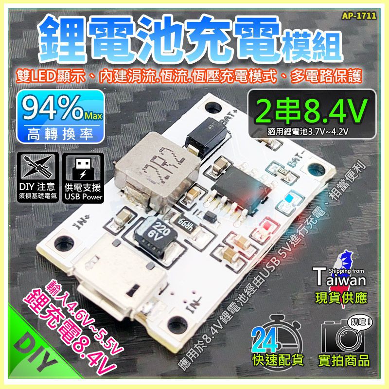 【W85】DIY 2串8.4V《鋰電池充電模組》雙LED顯示 MicroUSB Type-c 高轉換率【AP-1711】