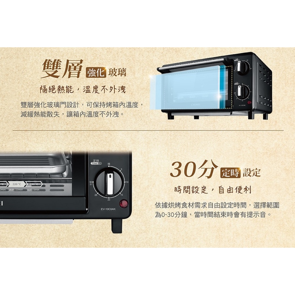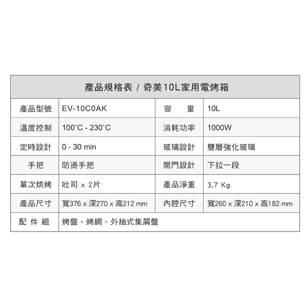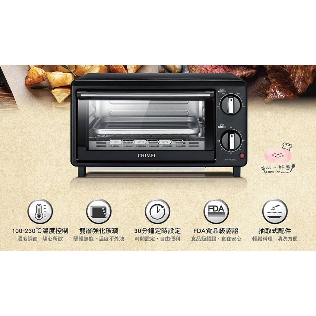 🎀現貨馬上出【CHIMEI 奇美】10公升家用電烤箱 EV-10C0AK 烤土司 可烤2片厚片 FDA食品級認證 烤箱