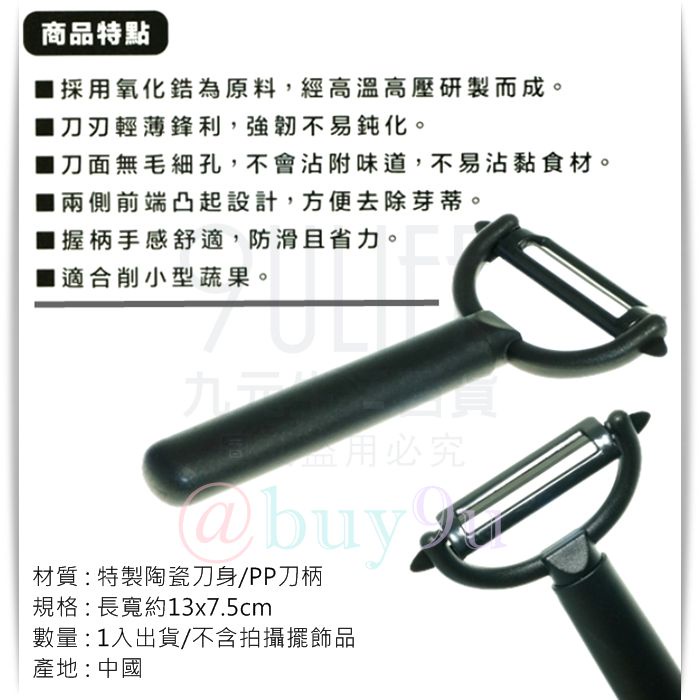 9uLife 蔬果削皮刀 雙向削皮刀 蔬果削皮器 日食陶瓷削皮刀 瓜刨 削皮刀 削皮器 雙向刀刃 陶瓷刨刀【九元】