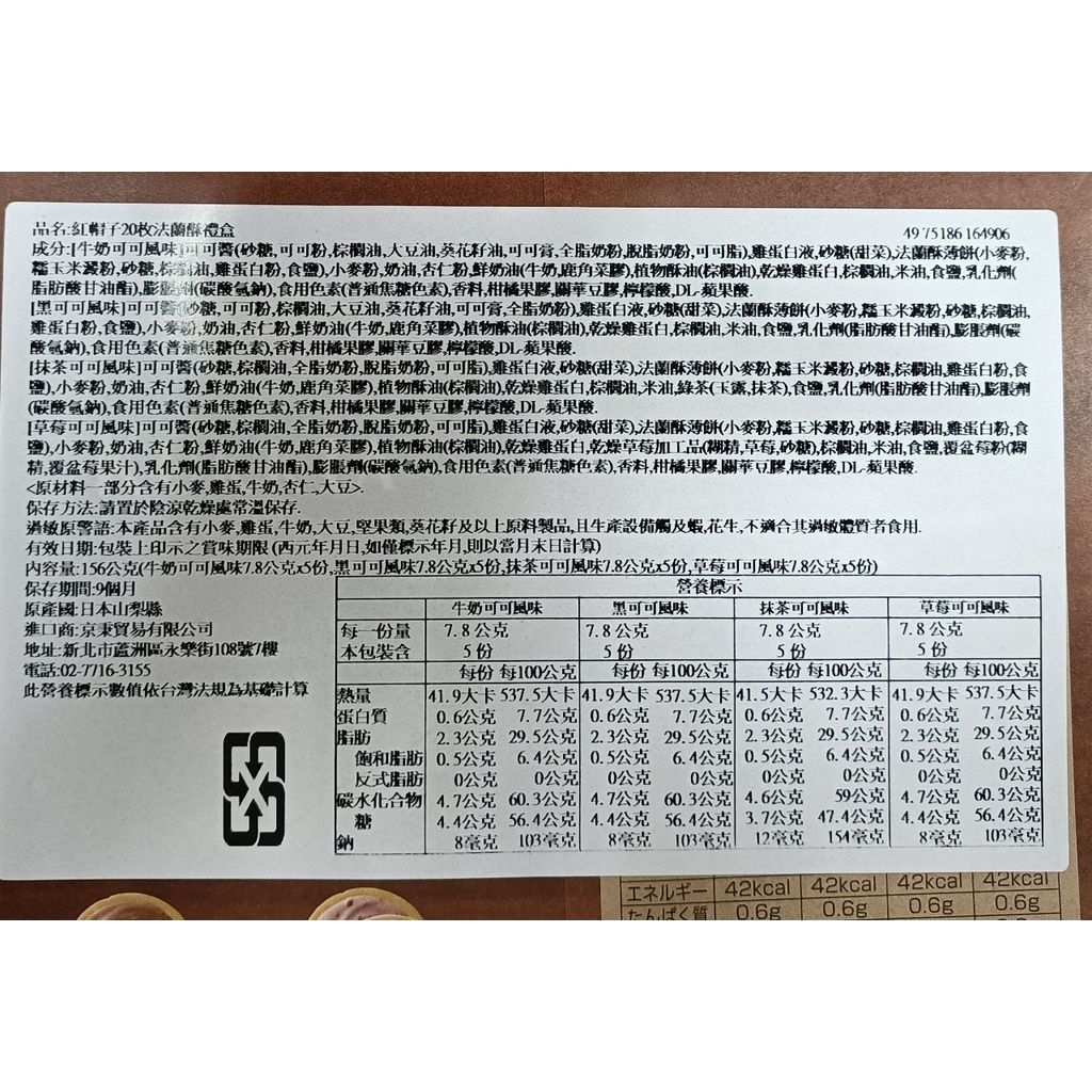 (艾吃吃小賣店)高帽子 TIVON 20枚法蘭酥156g KUKKIA 紅帽 禮盒 Tivoli Tivon