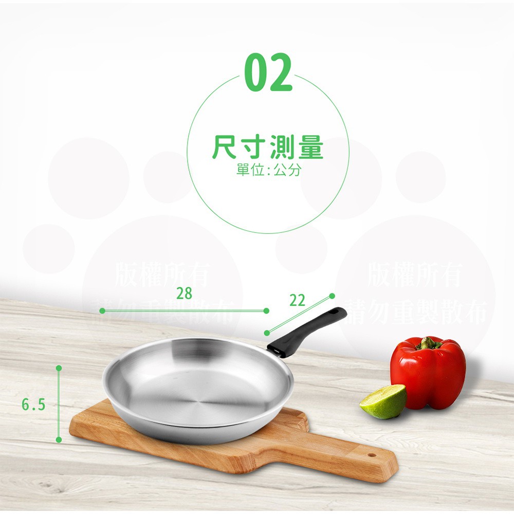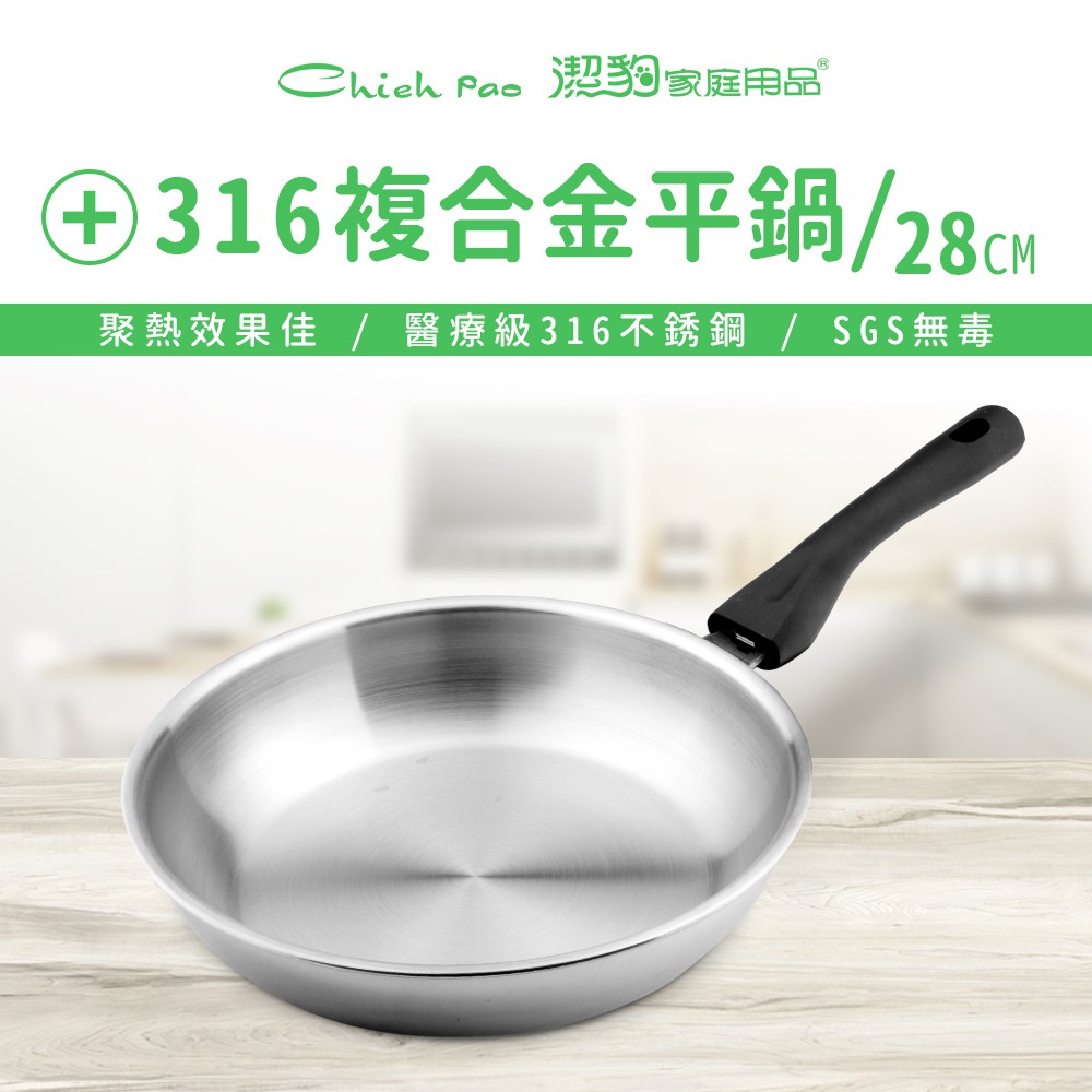 【潔豹】28CM 華麗平底鍋【316不銹鋼複合金 IH電磁爐可用】
