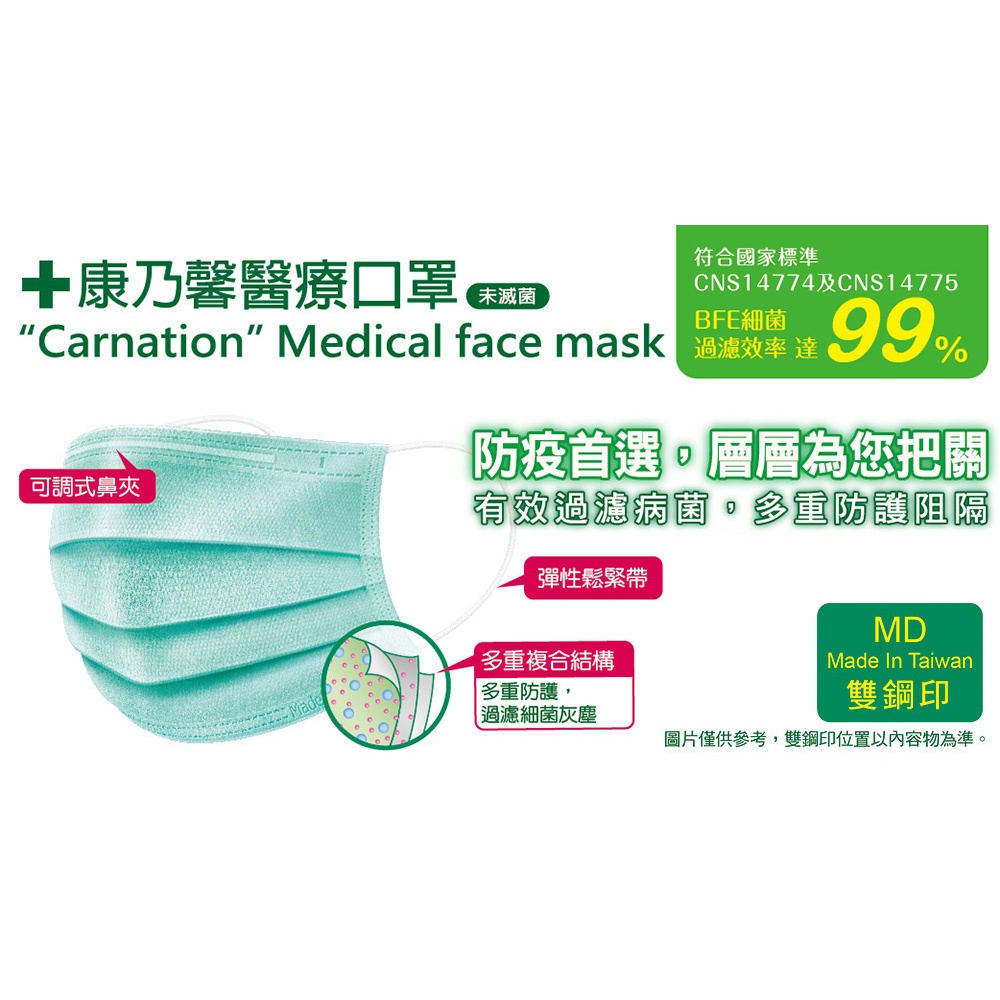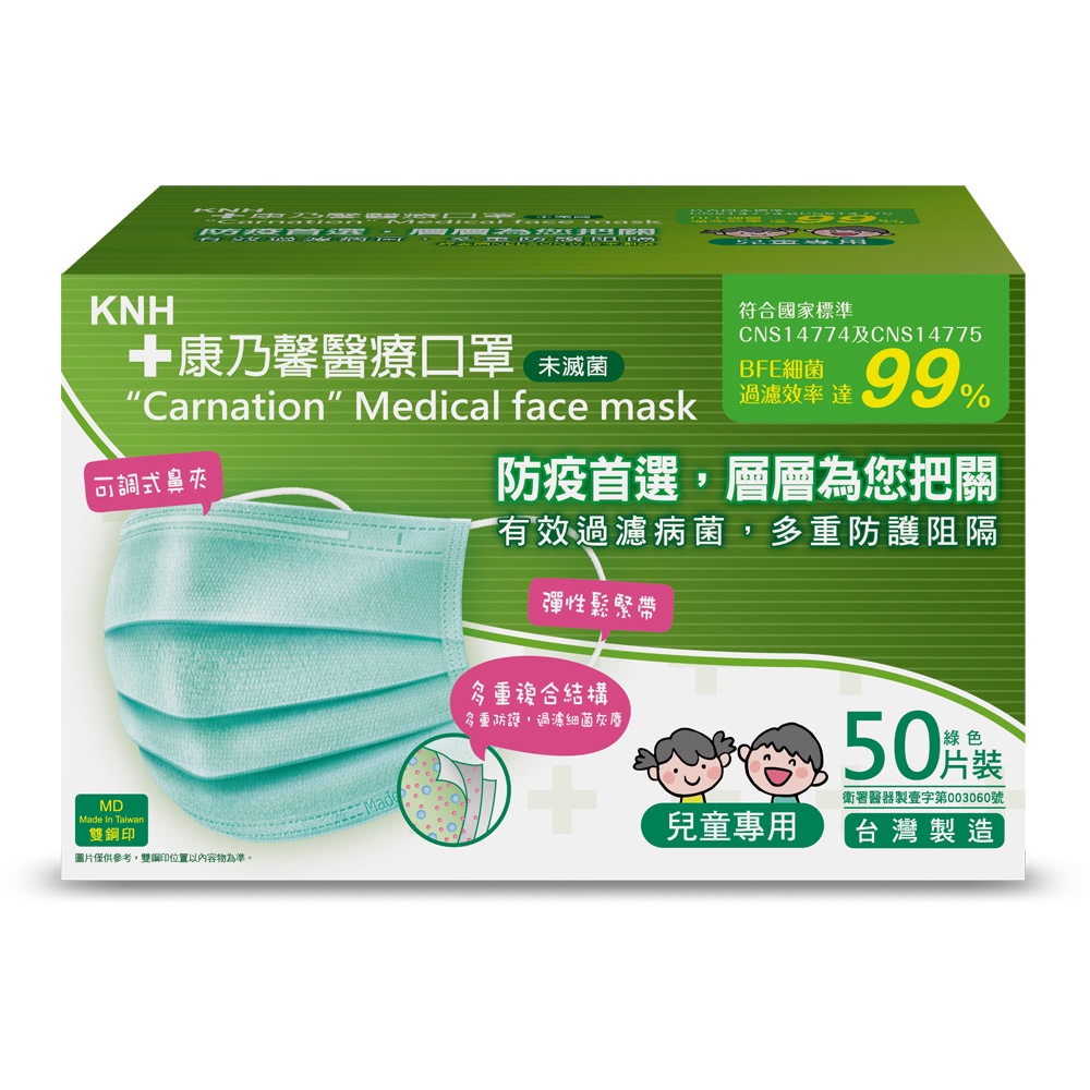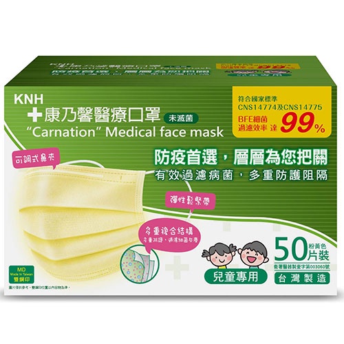 KNH 康乃馨 兒童 醫療 口罩 2色 (未滅菌) 一般 耳帶 50片/盒 (粉綠 粉黃)