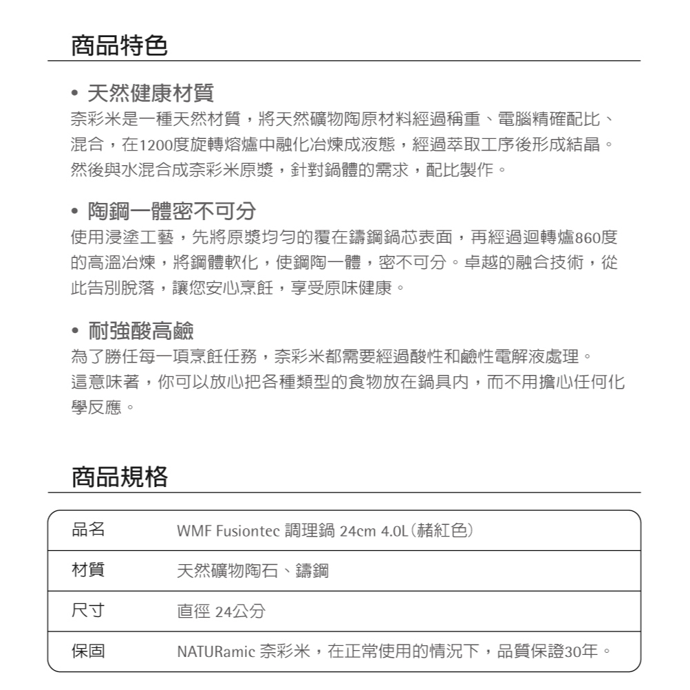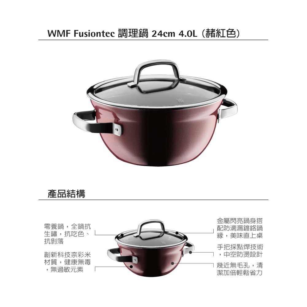 【贈不鏽鋼蒸盤+食譜書】德國WMF FUSIONTEC 調理鍋24CM 4.0L(赭紅色)