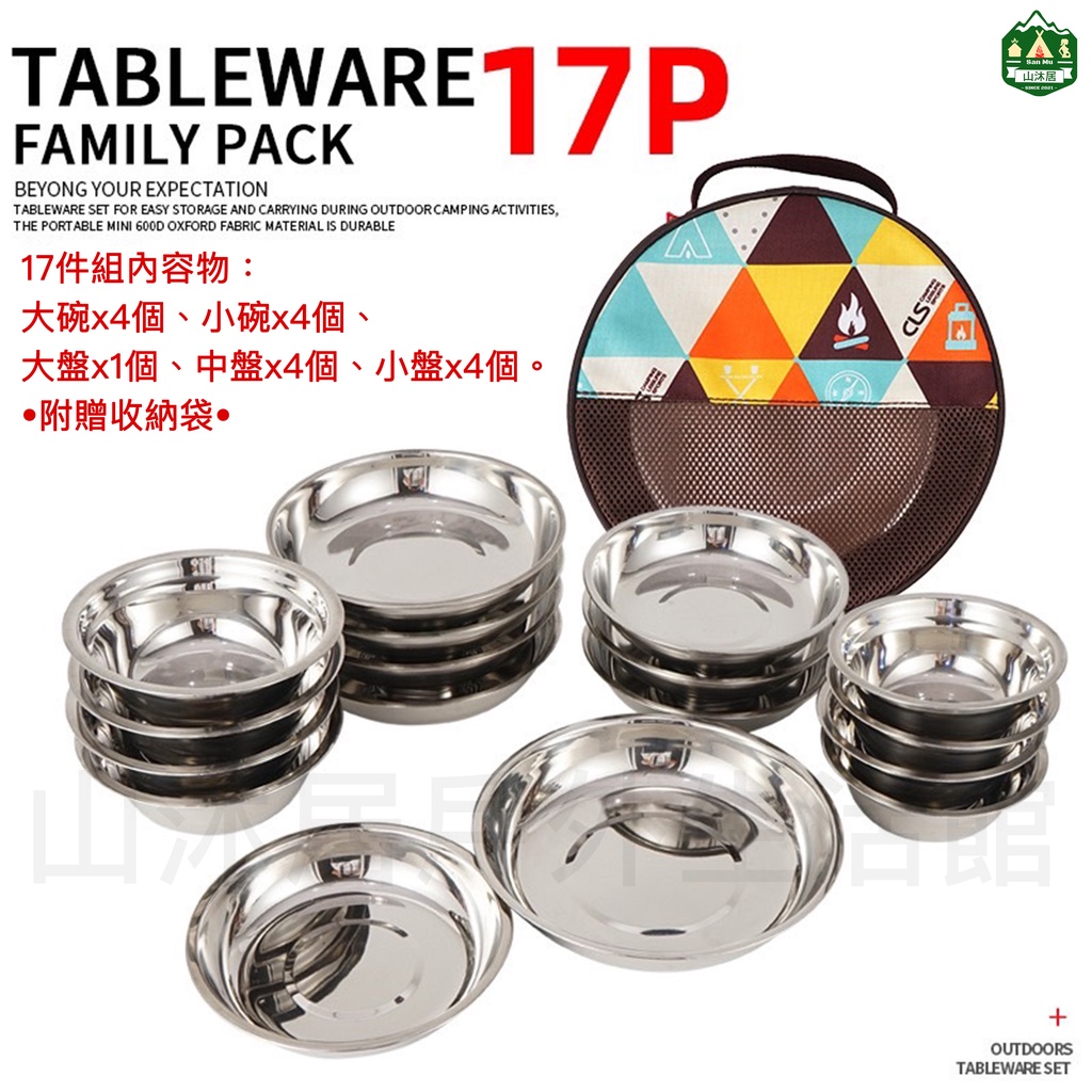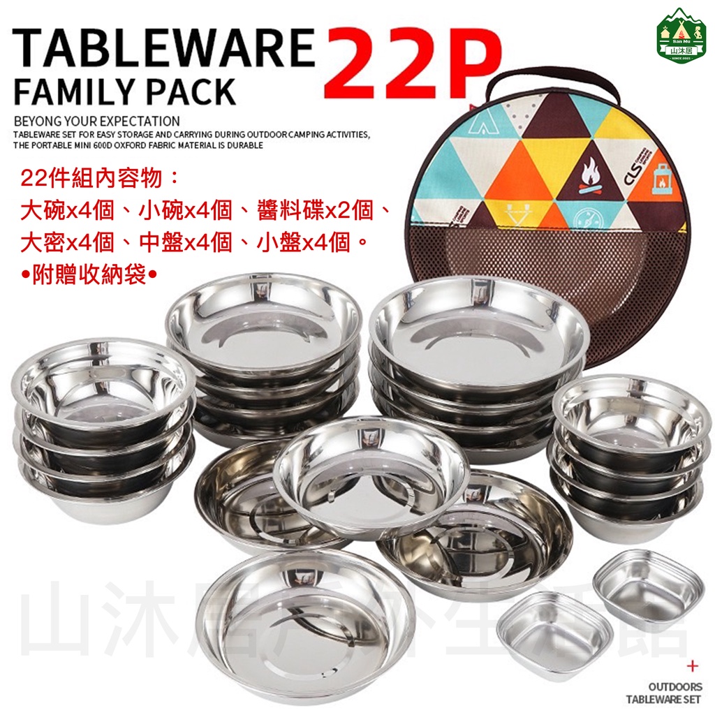 台灣現貨+發票✨露營不鏽鋼22件套&17件套碗盤組、戶外餐具碗盤附收納袋、便攜野餐碗與餐盤~