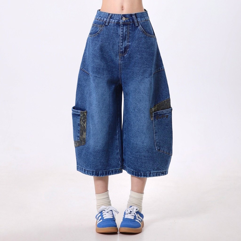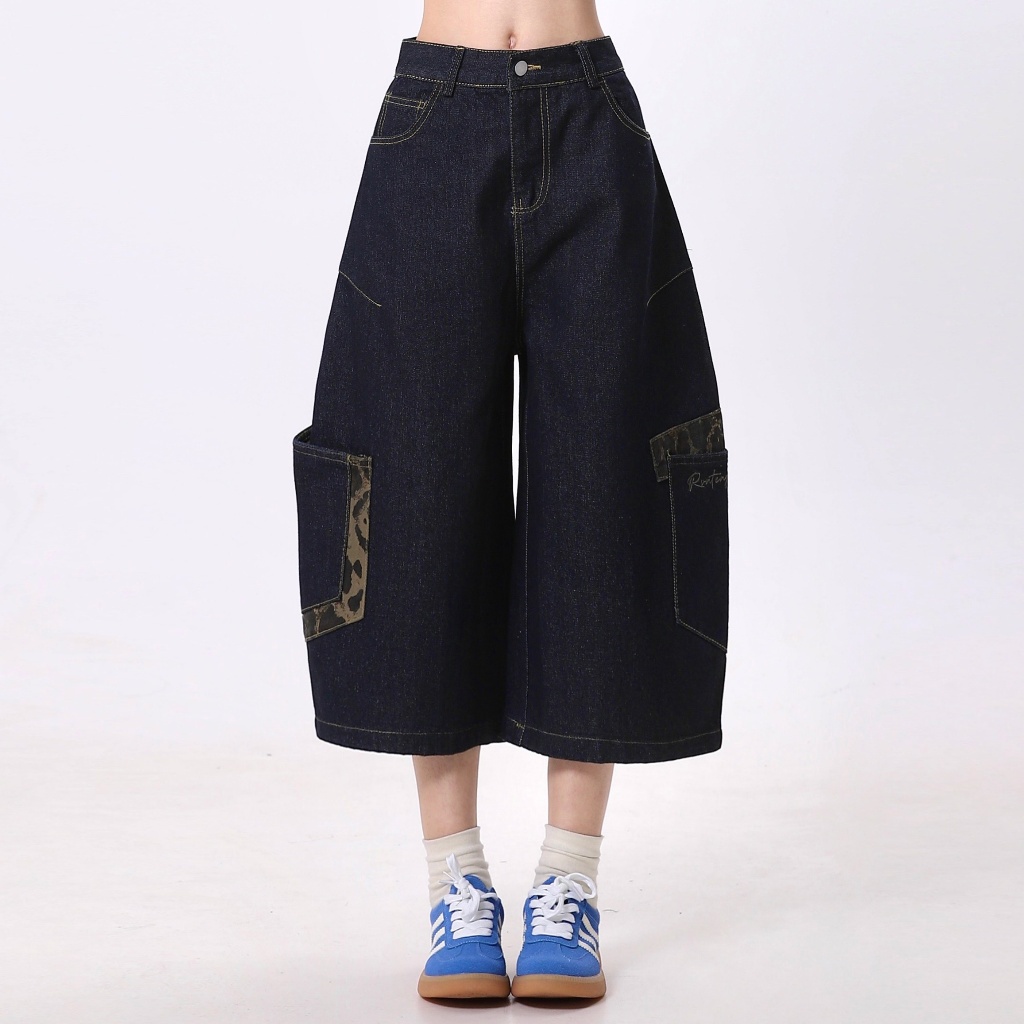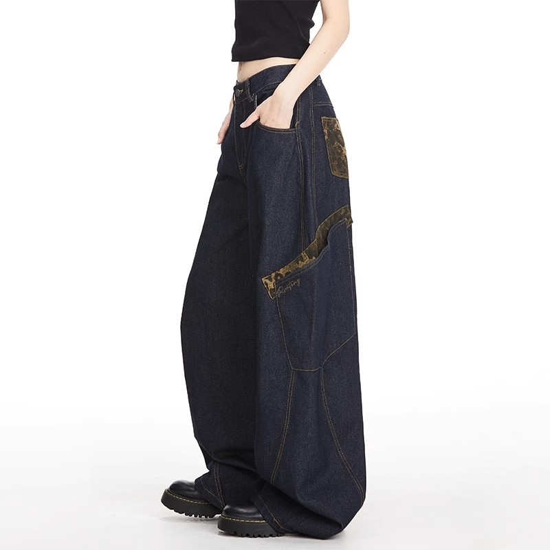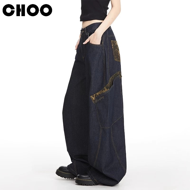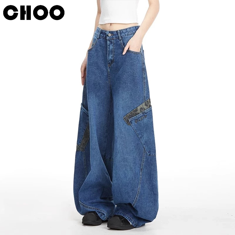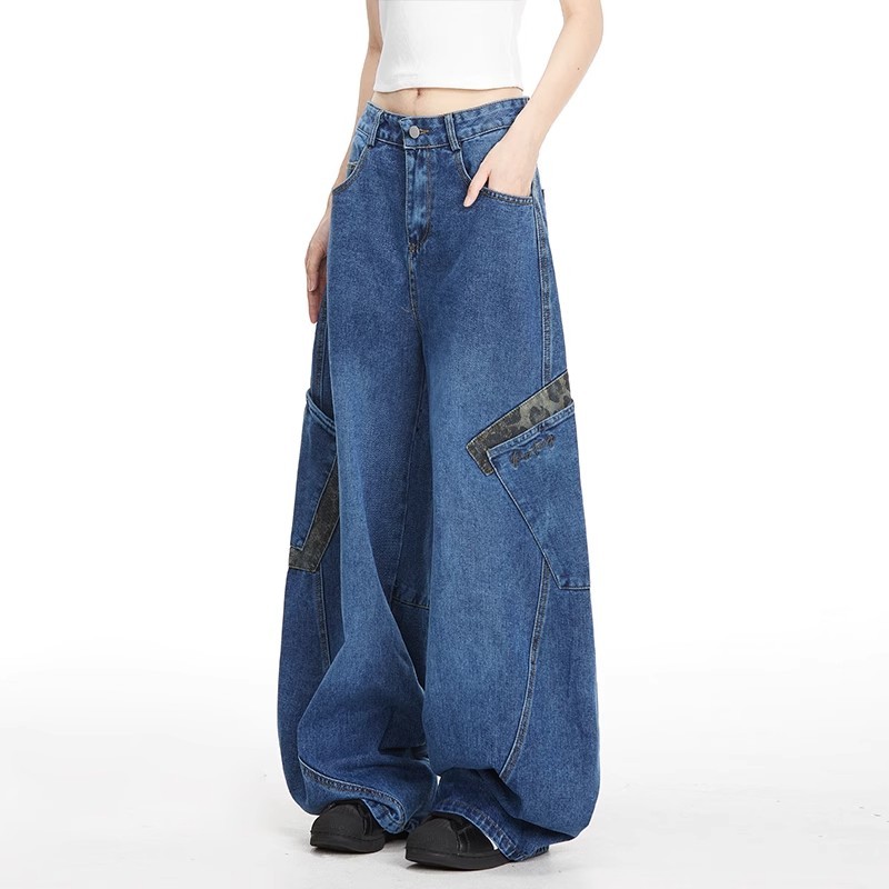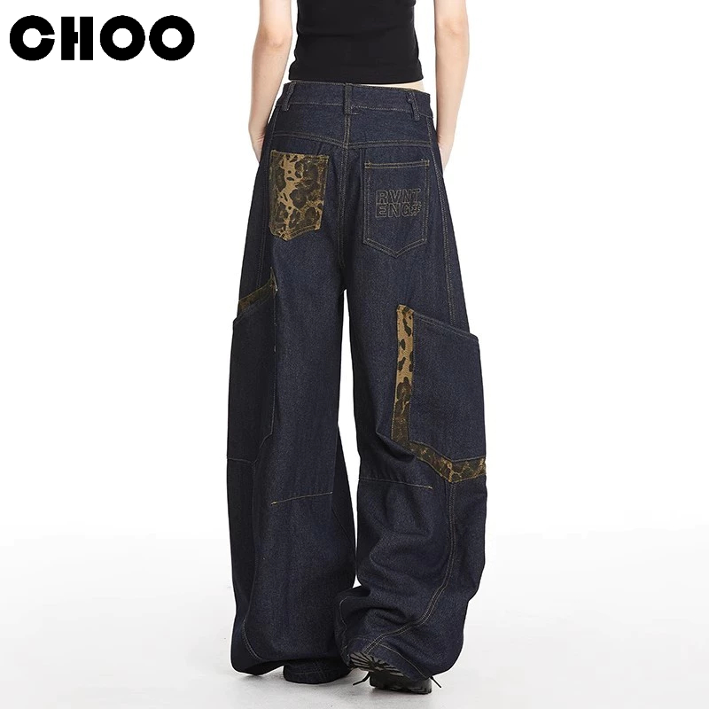 【CHOO】大彎刀牛仔褲 豹紋牛仔長褲 水洗大口袋牛仔褲 寬鬆闊腿 男女情侶 春秋夏冬 薄款休閒拖地牛仔褲 高街嘻哈長褲