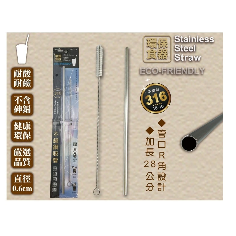 【心樂活生活百貨】米諾諾 正316(18-10)不銹鋼加長直型吸管 附吸管專用刷 1組137119