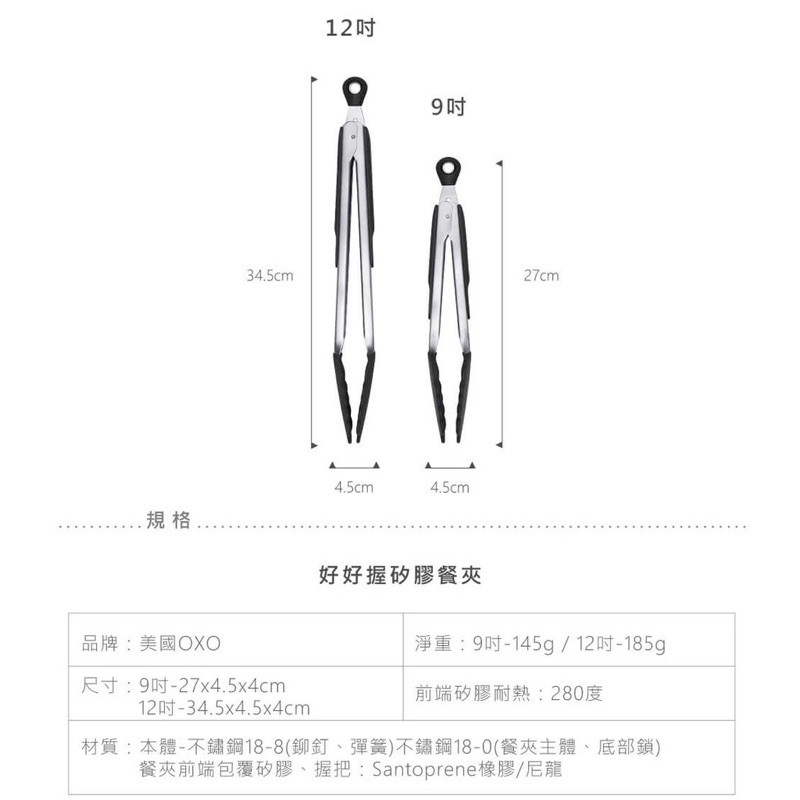 【OXO】 美國好好握矽膠餐夾 9吋/12吋