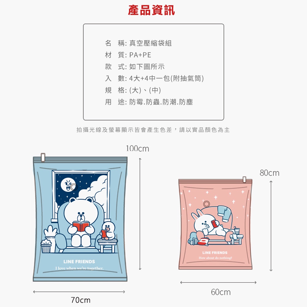 LINE Friends 真空壓縮袋 收納真空袋 (9入/組) 耍廢款