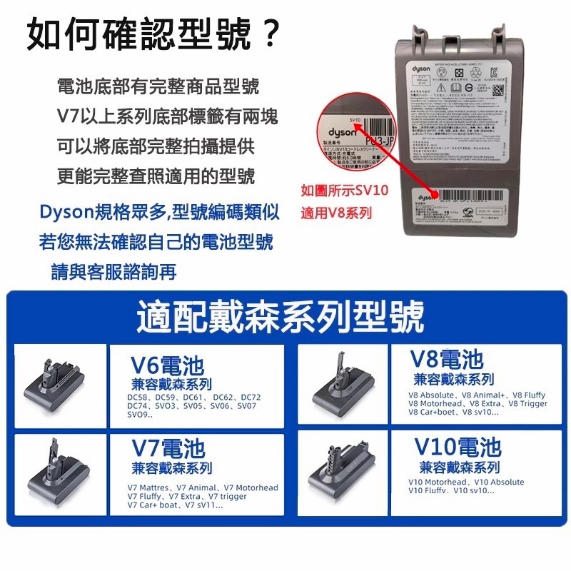 Dyson V6 V8 電池 戴森吸塵器V6V7V8系列電池 DC61/62/74 SV03/07/09 SV10K電池