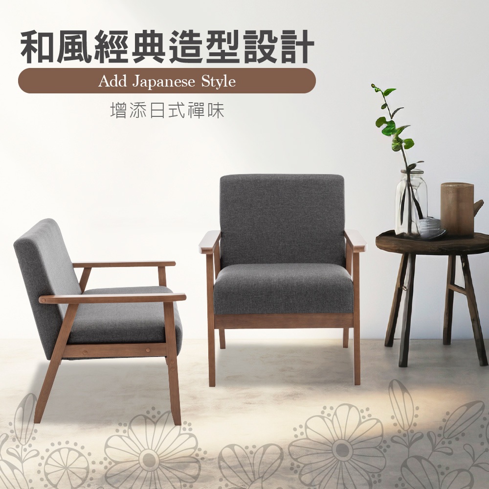 E-home 千尋和風布面實木框單人休閒椅 沙發 椅子 懶人沙發 沙發椅 單人沙發 椅子