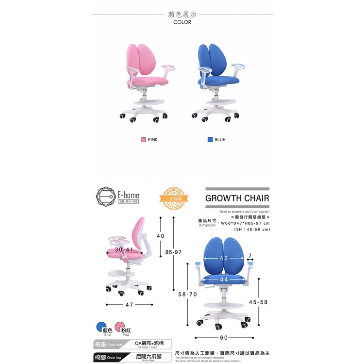 E-home 可可多功能成長兒童椅 兒童椅 椅子 書桌椅
