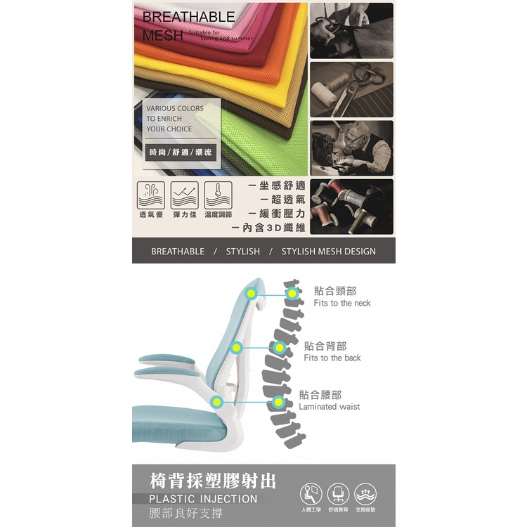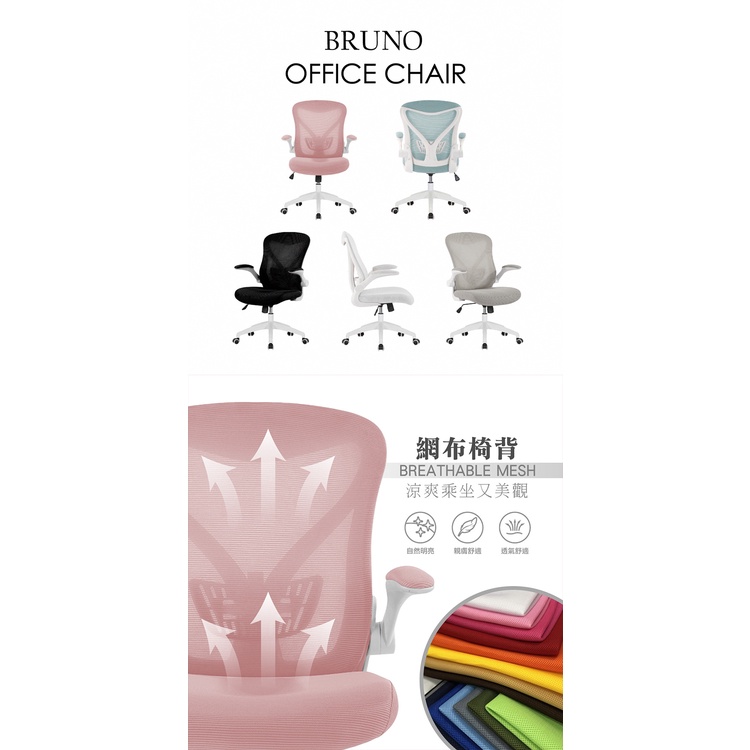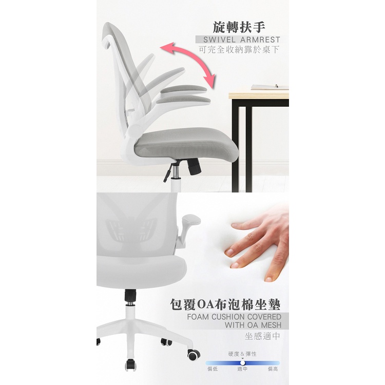 E-home 布魯諾網布可旋轉扶手電腦椅 辦公椅 椅子 書桌椅 人體工學 美容椅