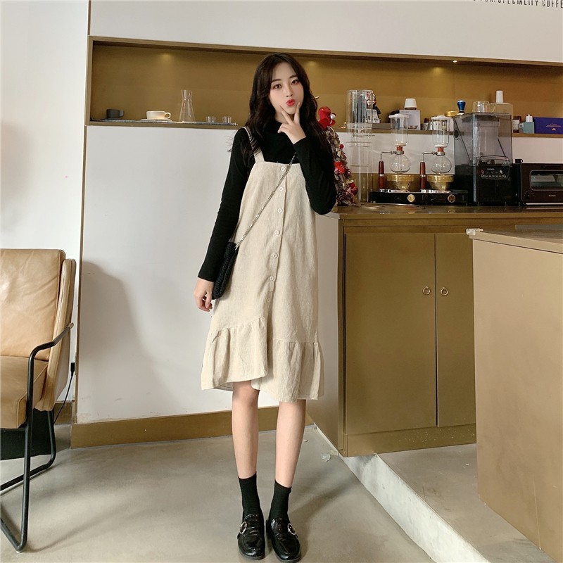 【太妮絲E5】現貨 現現貨初秋 燈心絨吊帶裙 魚尾裙 奶茶色 基本款 洋裝 長洋裝 駝色