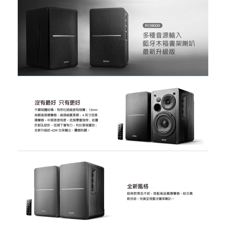 EDIFIER 漫步者 R1280DB 2.0聲道藍牙喇叭 黑色 台灣總代理保固 | 強棒電子