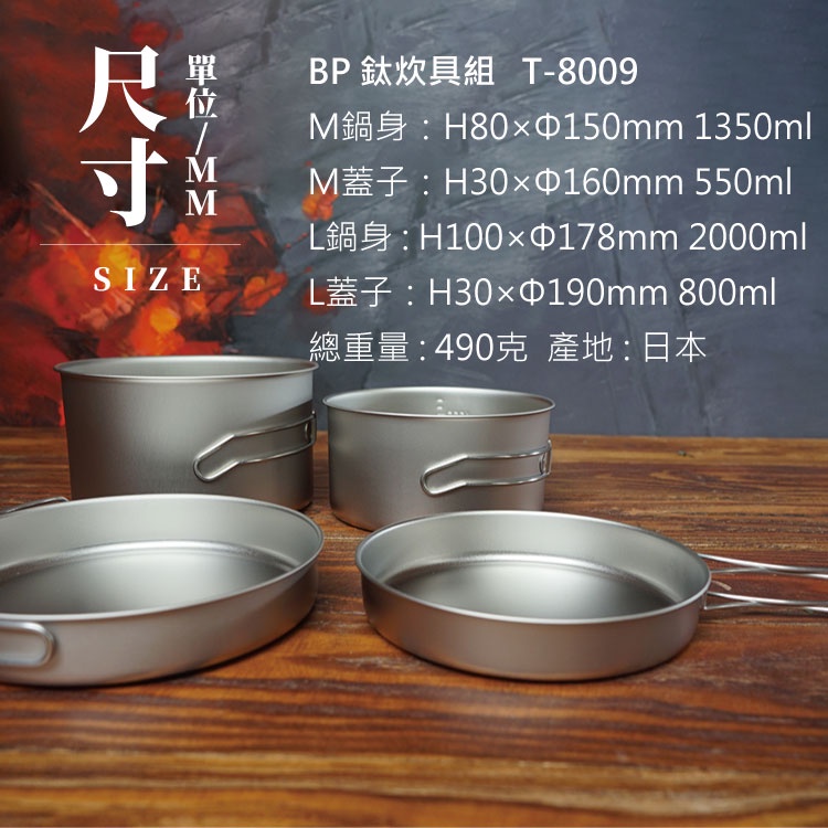 EPIgas BP 鈦炊具組 (II) T-8009 2鍋2蓋 / 鈦鍋 登山鍋具 輕量鍋具 純鈦