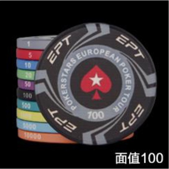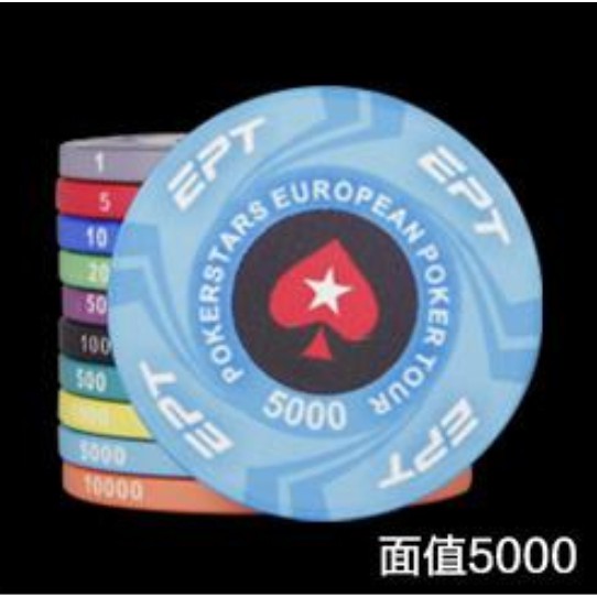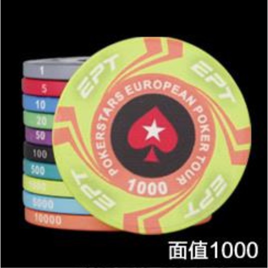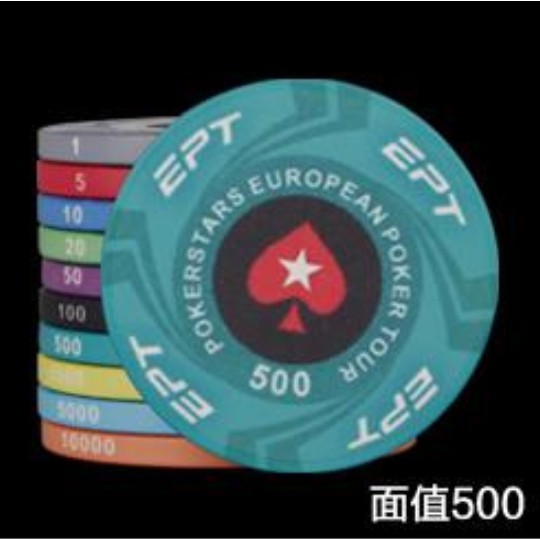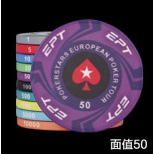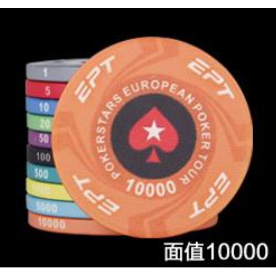 EPT陶瓷籌碼-德州撲克、麻將、桌遊。十種面額任選。撲克桌