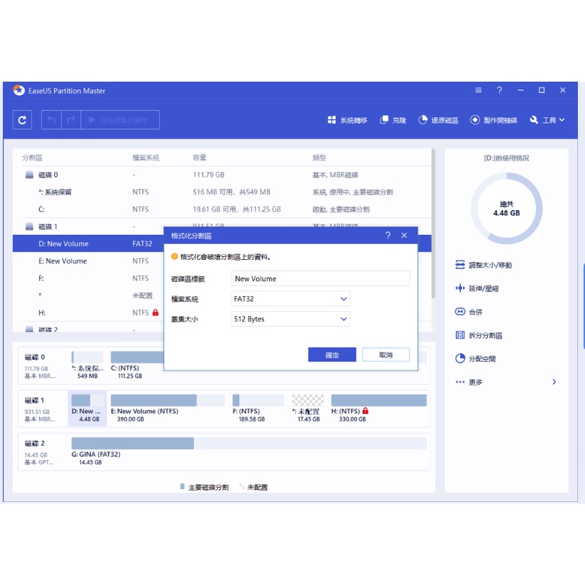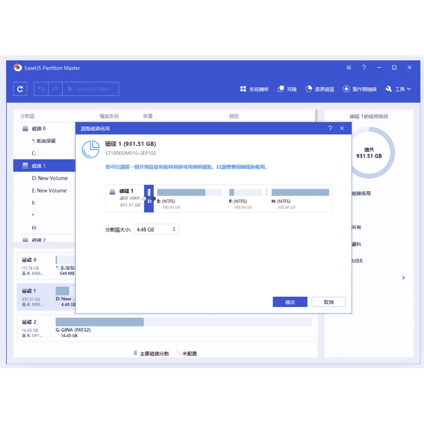 EaseUS Partition Master調整系統分割區大小 -磁碟分割軟體(2台電腦授權)