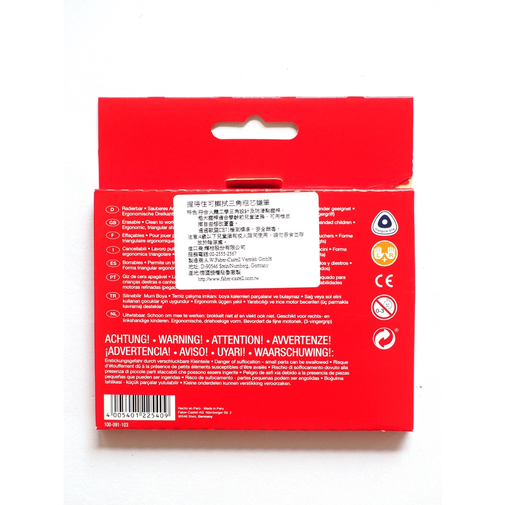 【汶采】輝柏Faber-Castell握得住可擦拭大三角粗芯蠟筆-12色 幼兒畫粉蠟筆 童畫 開學季優惠 122540