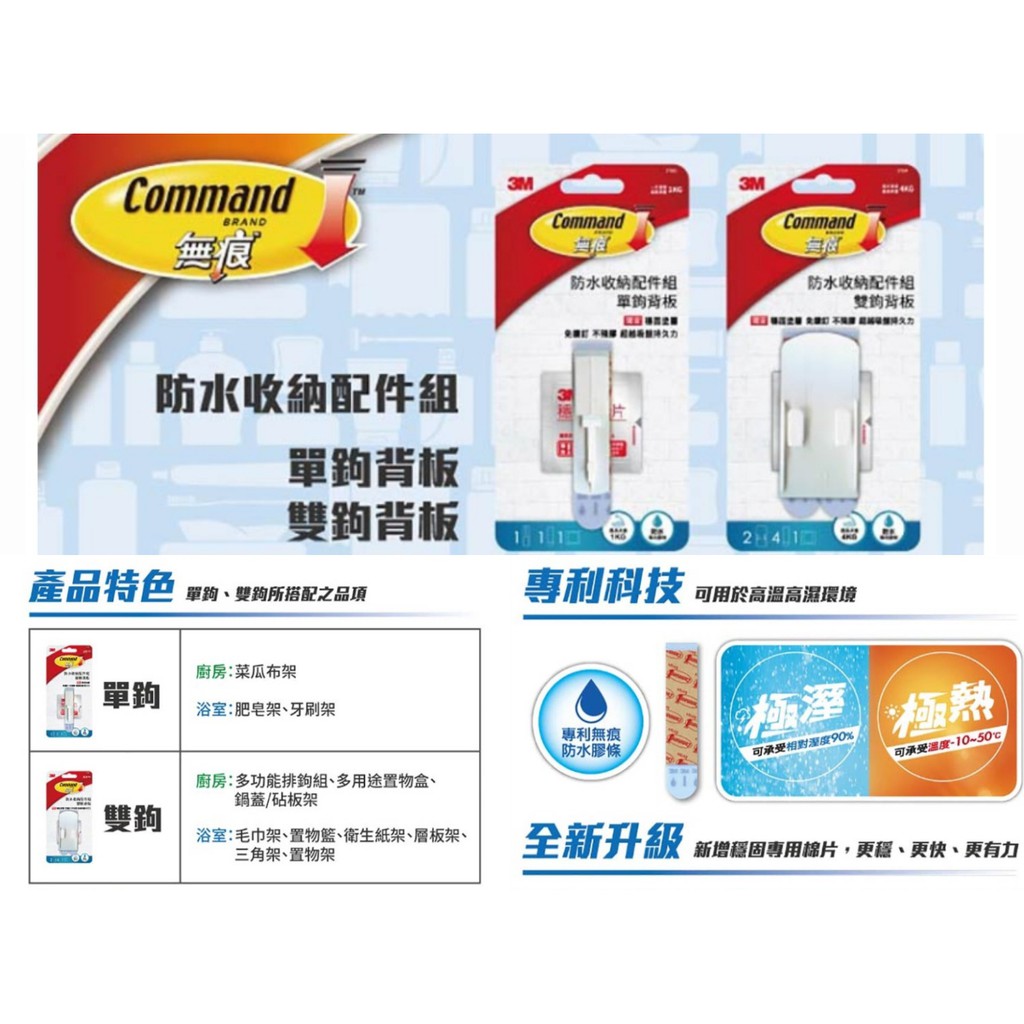 3M 無痕掛鉤 雙鉤背板17684防水收納配件組-穩固專用棉片配件包 適用置物籃/三角架/層板架衛生紙架/置物盒 掛鉤