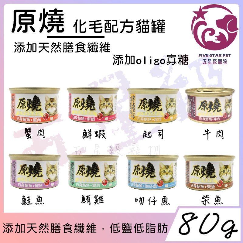 ☆五星級寵物☆原燒-化毛配方貓罐,白身鮪魚,8種口味,80g