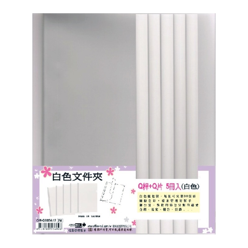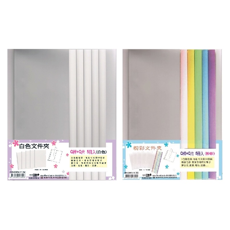 Q桿+Q片文件套5入組 白桿 / 粉彩 (特價)【久大文具】0118