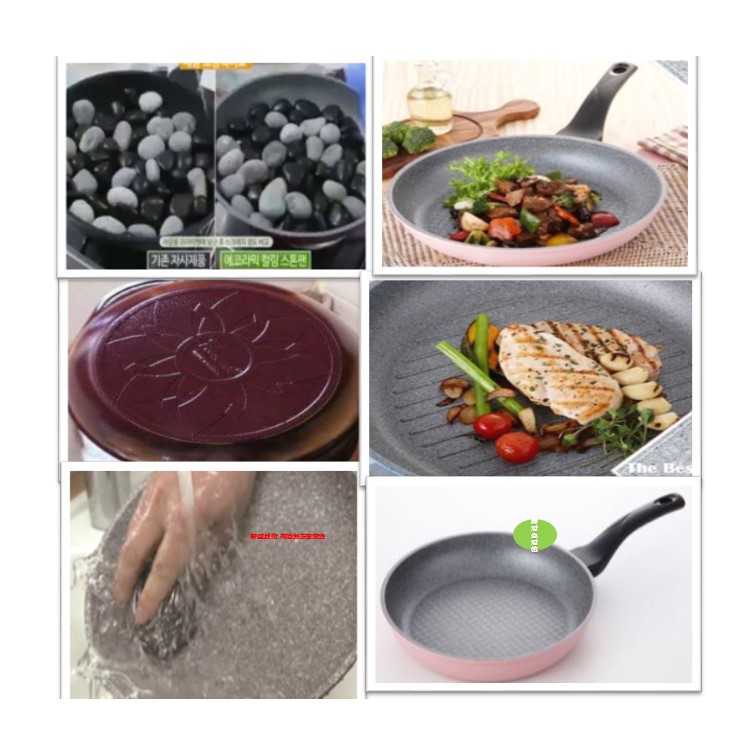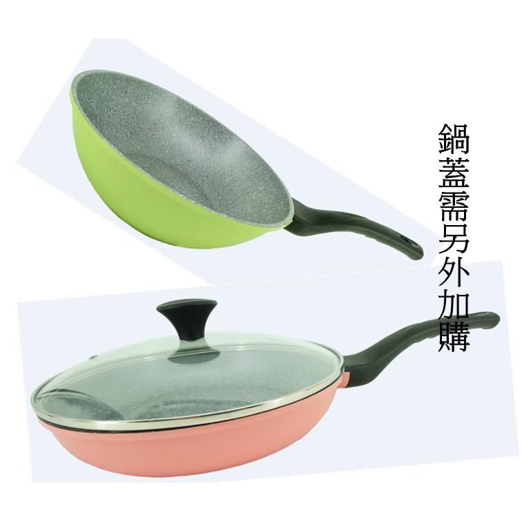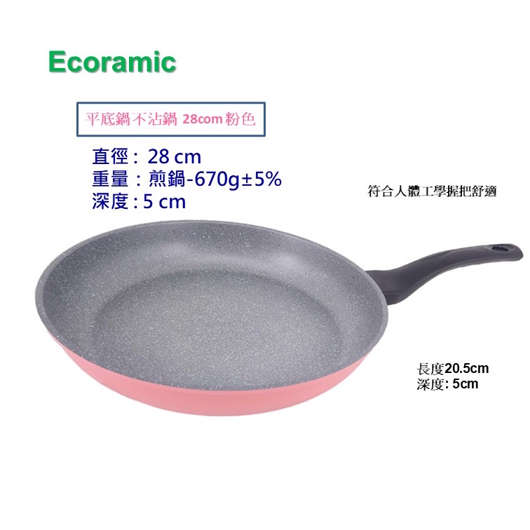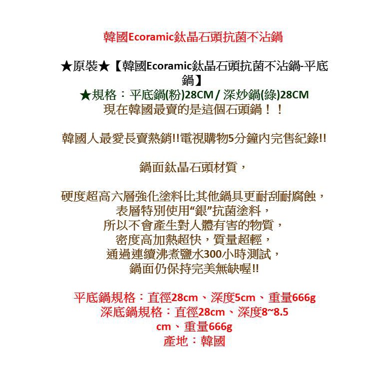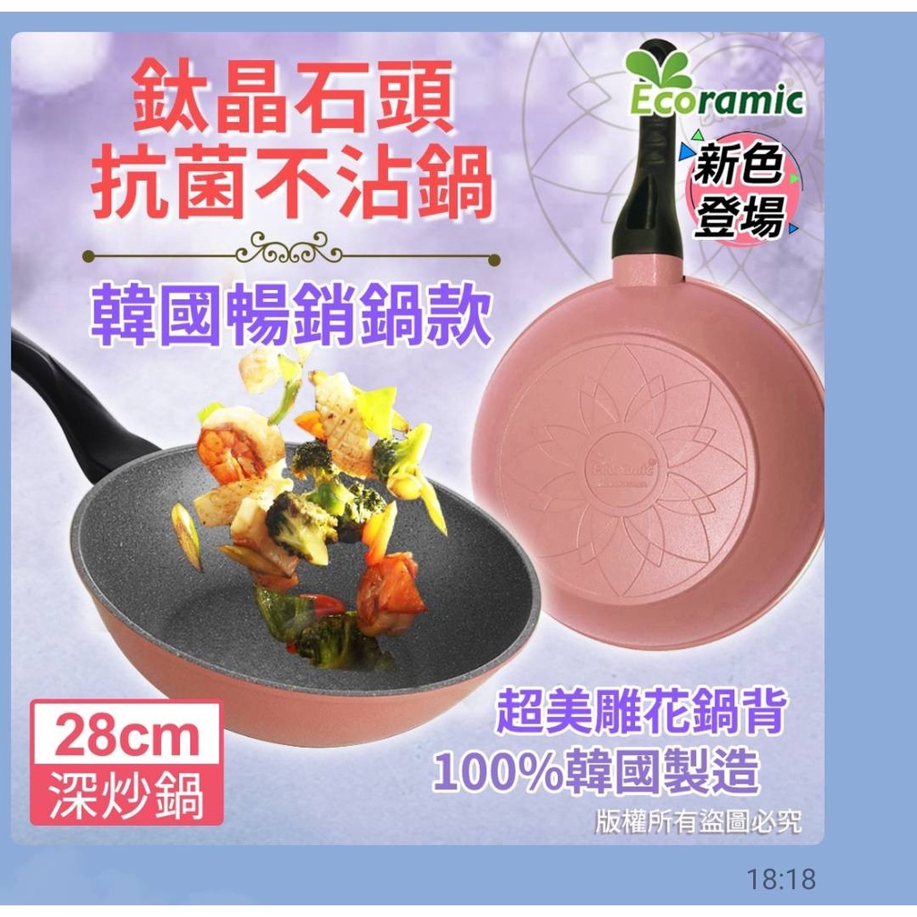 韓國Ecoramic鈦晶石頭抗菌 不沾鍋 炒鍋 平底鍋 - 28cm 粉色平底鍋/ 綠色深炒鍋/雕花粉色深炒鍋