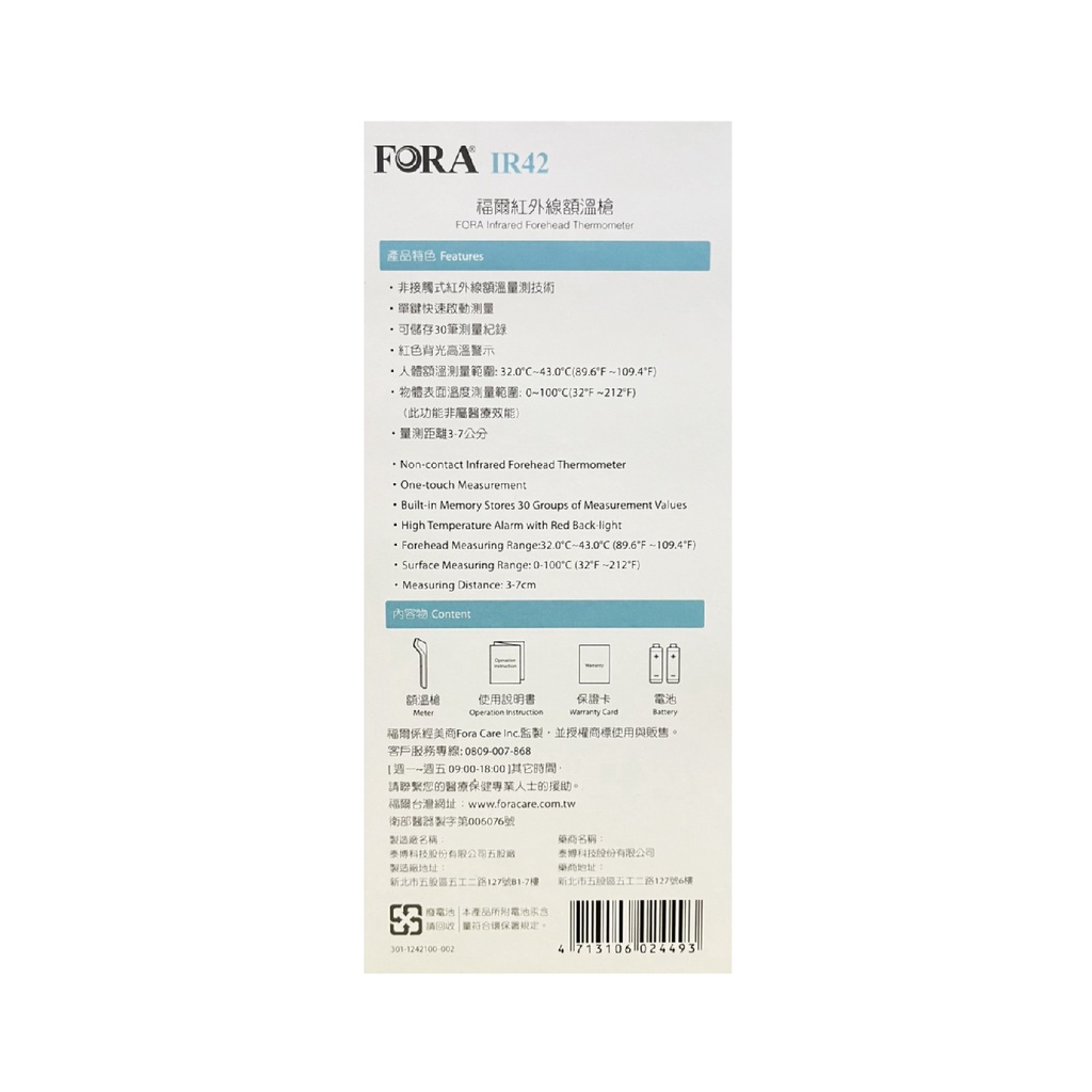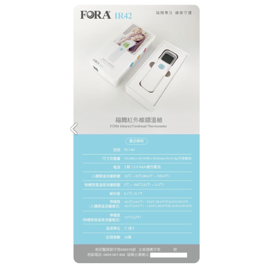 FORA-IR42 福爾紅外線額溫槍《台版》耳溫槍 溫度計 體溫計 健康儀器【富康活力藥局】