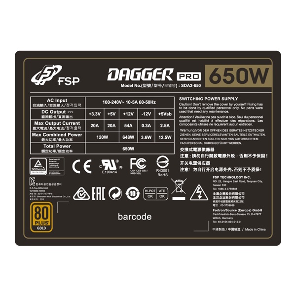 FSP 全漢 金鋼彈 650W/SDA2-650/80PLUS金牌/SFX/電源供應器/崇時電腦